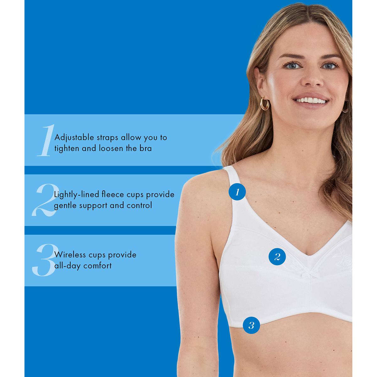The Womens Bestform floral trim wire-free cotton bra features a U-shaped leotard back helps keep the straps in place. Perfect for almost all clothing and comfortable enough for all-day wear.