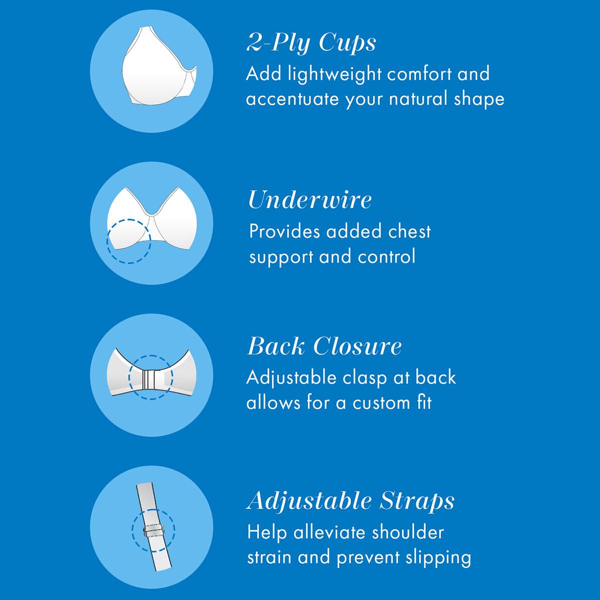 • LIGHT SUPPORT. This women´s bra features 2 ply underwire cups for added chest support and control.