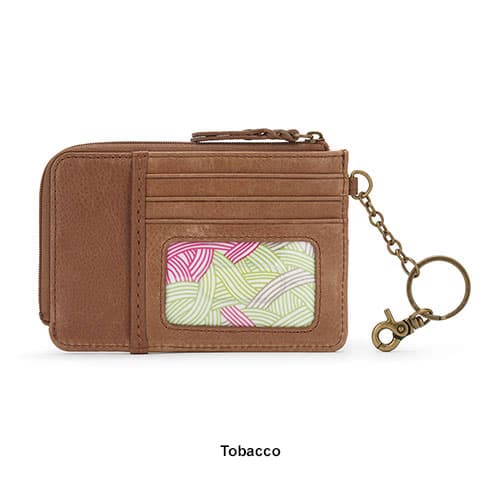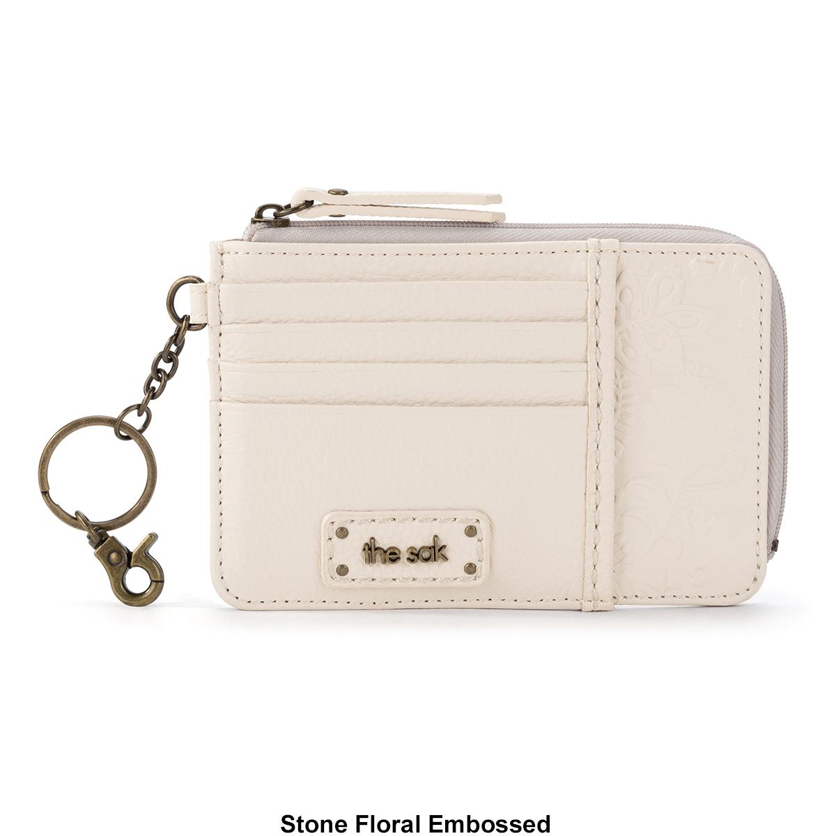 Description The Womens Sak Gen Iris credit card wallet is great for on the go. The wallet is made of leather and has a zip-around entry. There is a split key ring, with a dog...