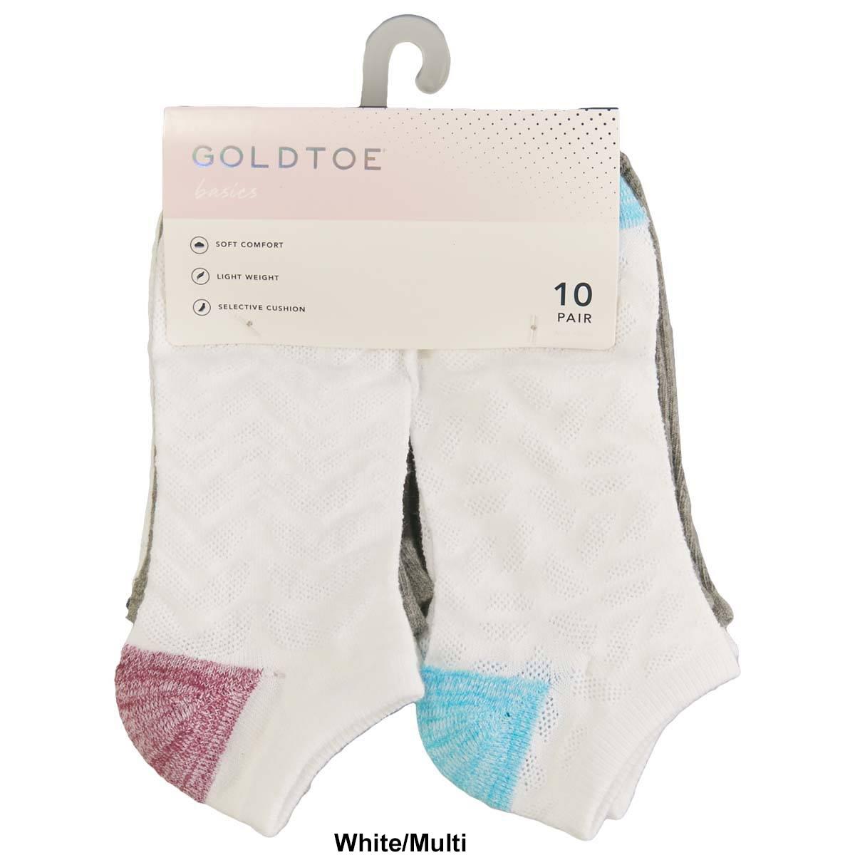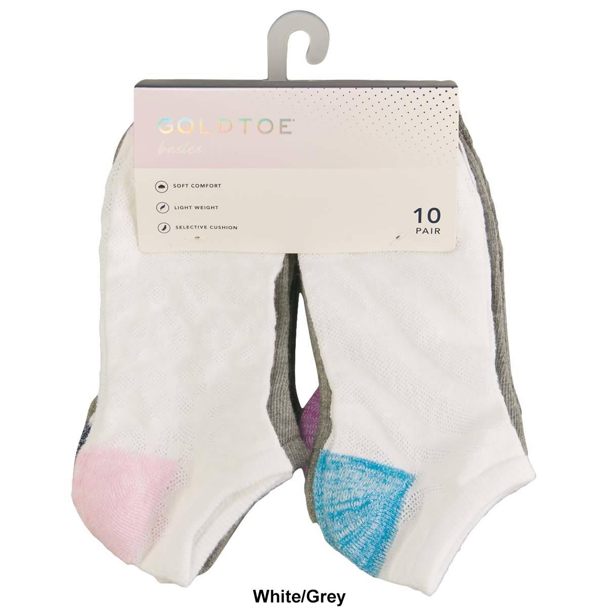These basic Womens Gold Toe® 10-pack cushion heel and toe no show socks with mesh are perfect for daily wear with any shoes. Features a lightweight material and soft comfort for lasting comfort throughout the day.