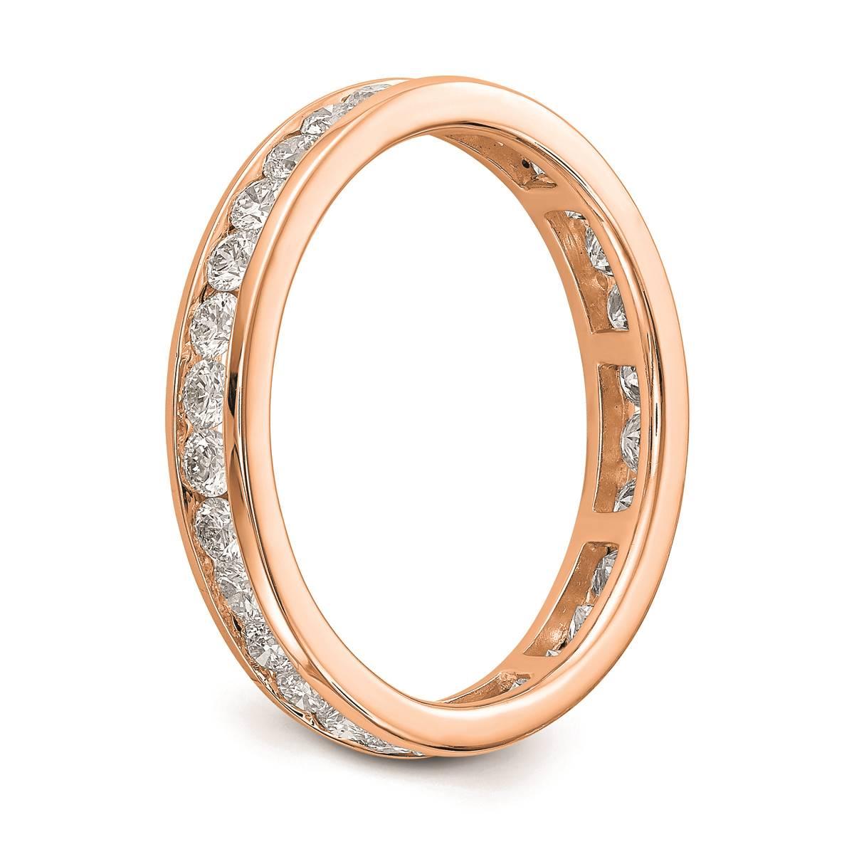 Simple yet rich, this Pure Fire 14kt. Rose Gold Lab Grown 1ctw. Eternity Band will certainly add dazzling allure to your personal style. Presents a scintillating array of channel set lab-grown diamonds. Ideal for any occasion.