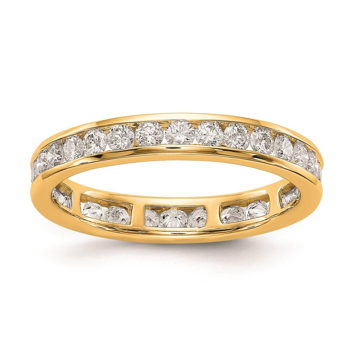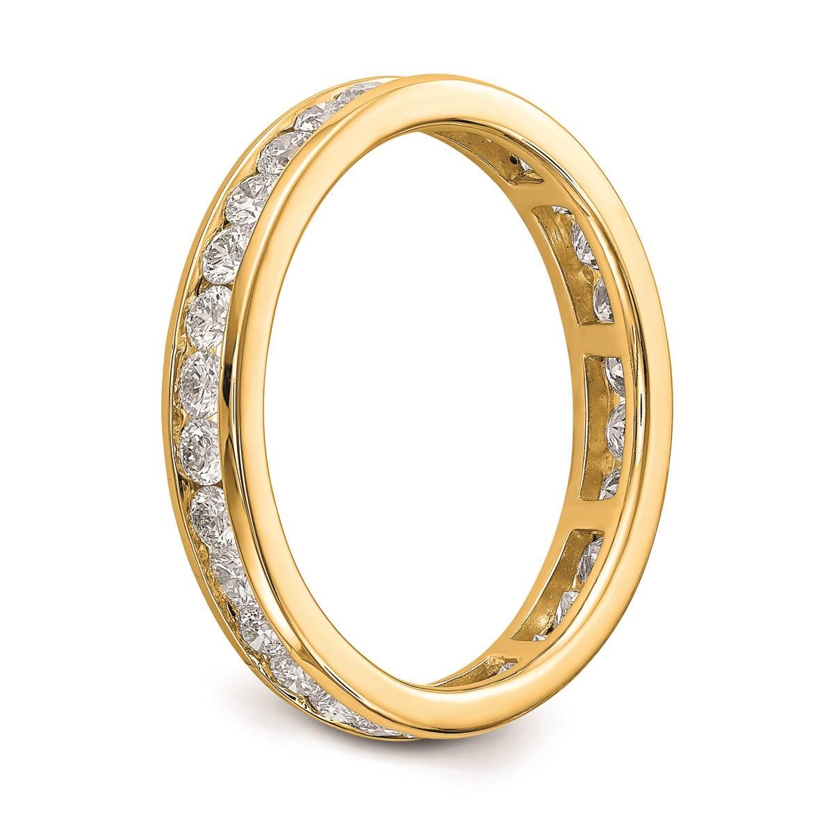 Simple yet rich, this Pure Fire 14kt. Yellow Gold Lab Grown 1ctw. Eternity Band will certainly add dazzling allure to your personal style. Presents a scintillating array of channel set lab-grown diamonds. Ideal for any occasion.