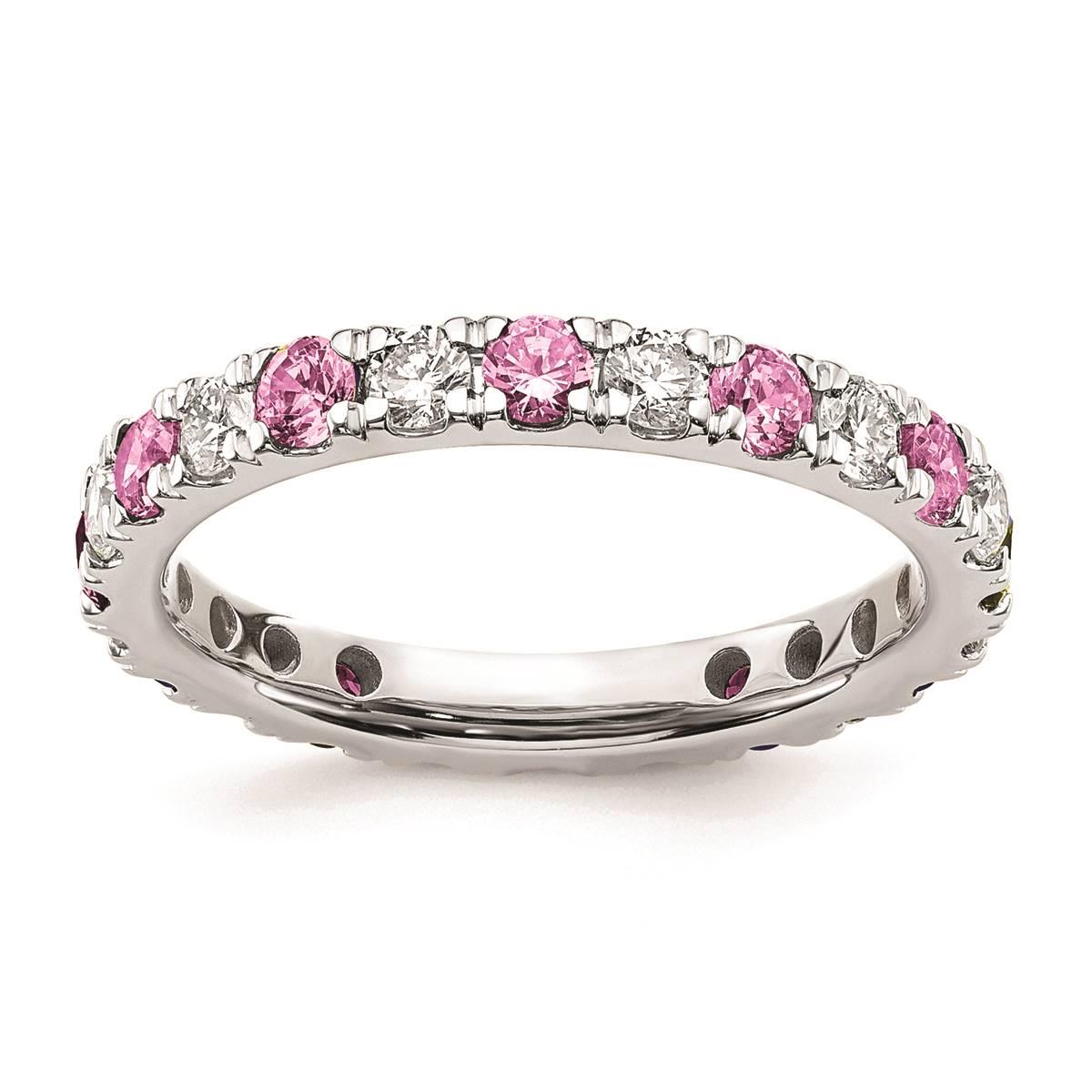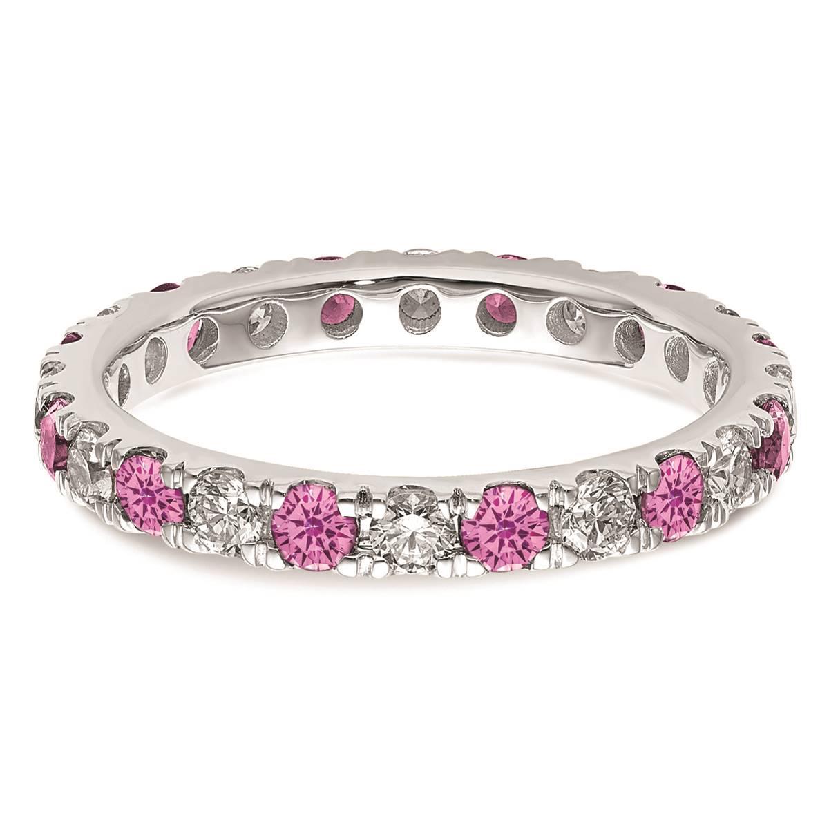 Description Add some colorful delight to your attire with this Pure Fire 14kt. White Gold Lab Created Pink Sapphire Band. Dazzling 0.99ctw. created Pink Sapphire gemstones and...