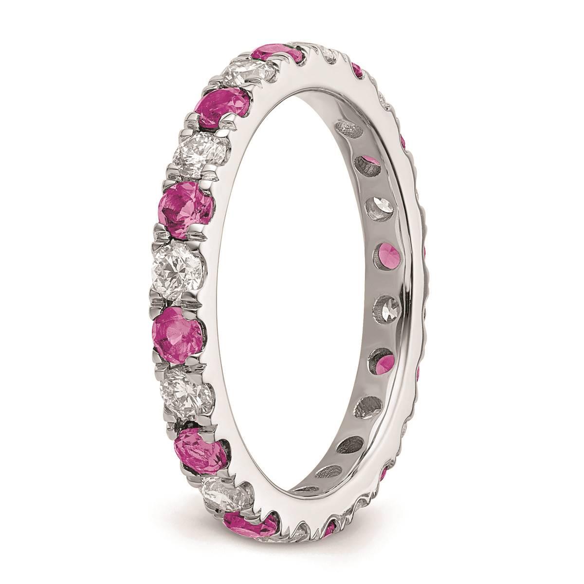 Add some colorful delight to your attire with this Pure Fire 14kt. White Gold Lab Created Pink Sapphire Band. Dazzling 0.99ctw. created Pink Sapphire gemstones and sparkling 0.64ctw. lab-grown diamonds make this ring shine.