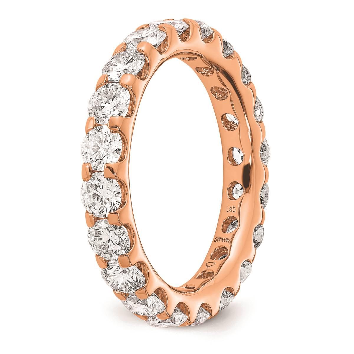 Description Express your love with this Pure Fire 14kt. Rose Gold Lab Grown Diamond Eternity Wedding Band. Exhibits forty-one round lab-grown diamonds throughout the band for an...