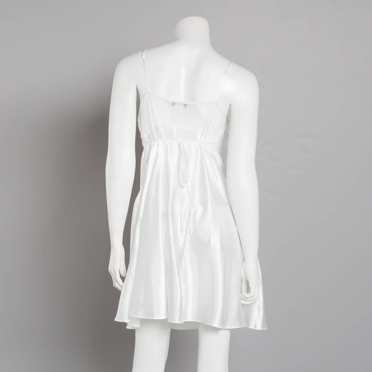 Description Make your day special with the Womens Linea Donatella bridal bouquet satin chemise. Featuring a pretty floral lace detail, adjustable straps, and a self tie on the...