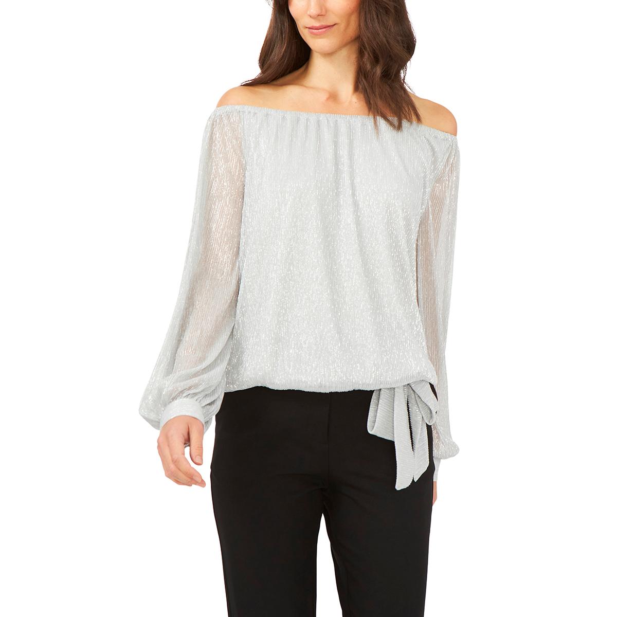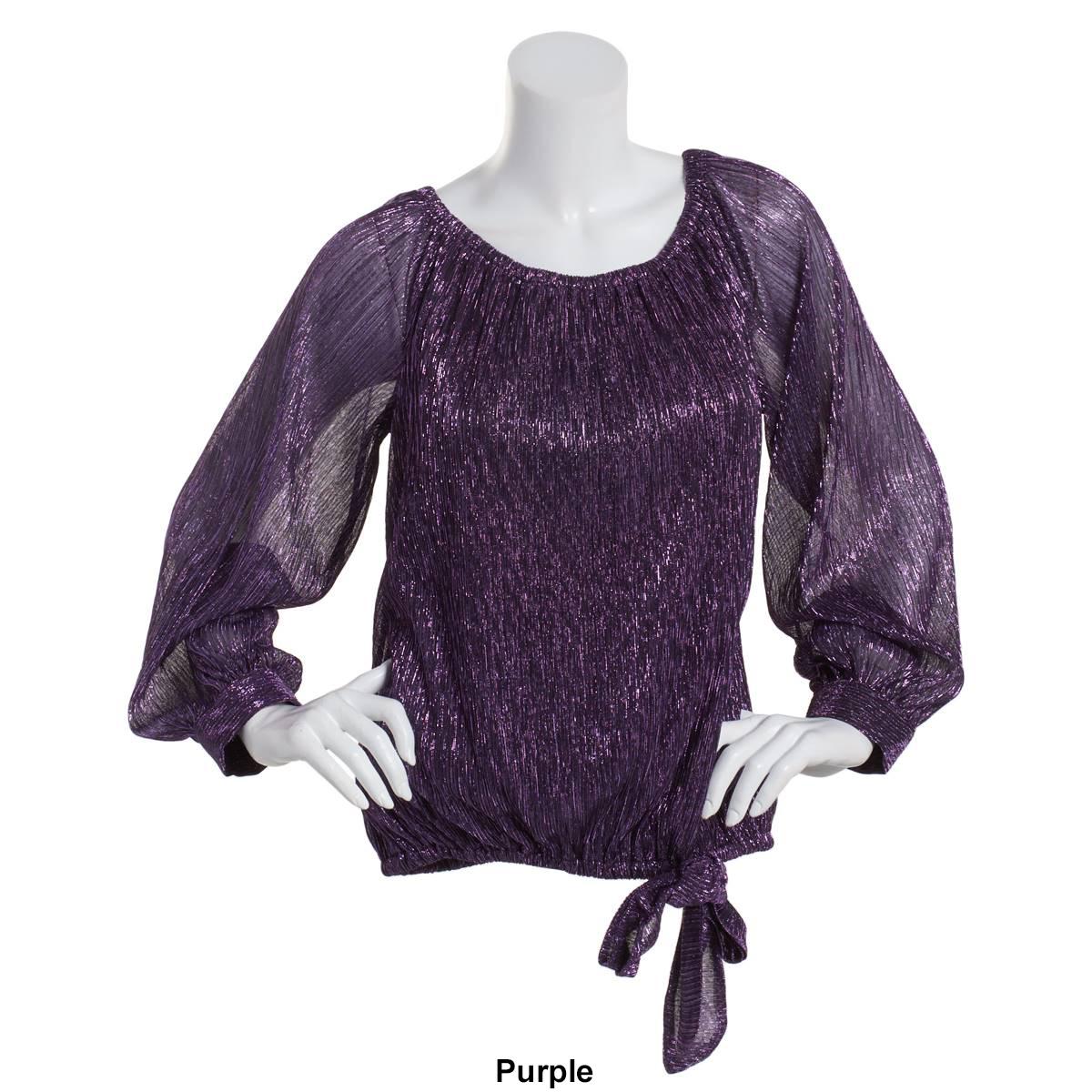 Add some sparkle to your style with this Womens MSK lurex crinkle blouse. This feature a romantic off-the-shoulder design sparkling with a metallic design and finished with dramatic long balloon sleeves, and a tie bottom.