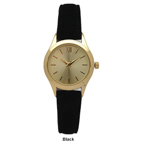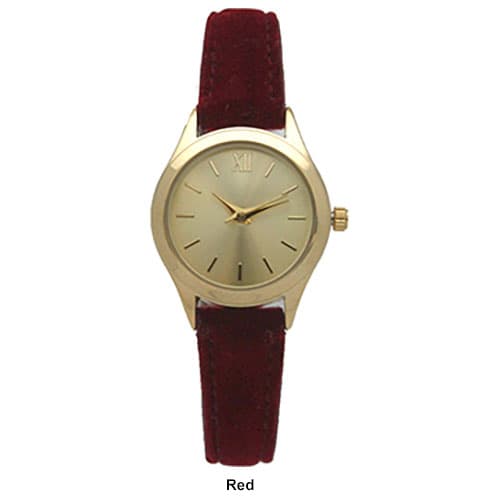 Description This Womens Olivia Pratt watch features a skinny velvet strap with a soft velvet finish and gold-tone dial case and lugs. It includes a simple baton hour indices....