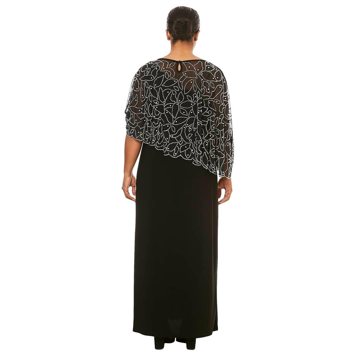 Womens MSK Asymmetrical Beaded Poncho Overlay Gown
