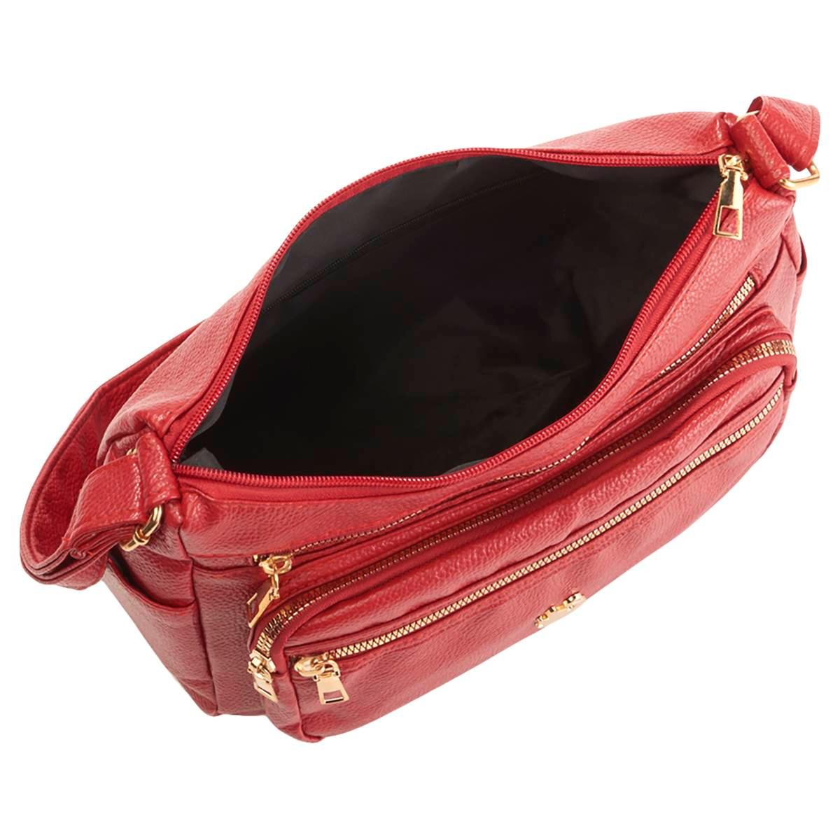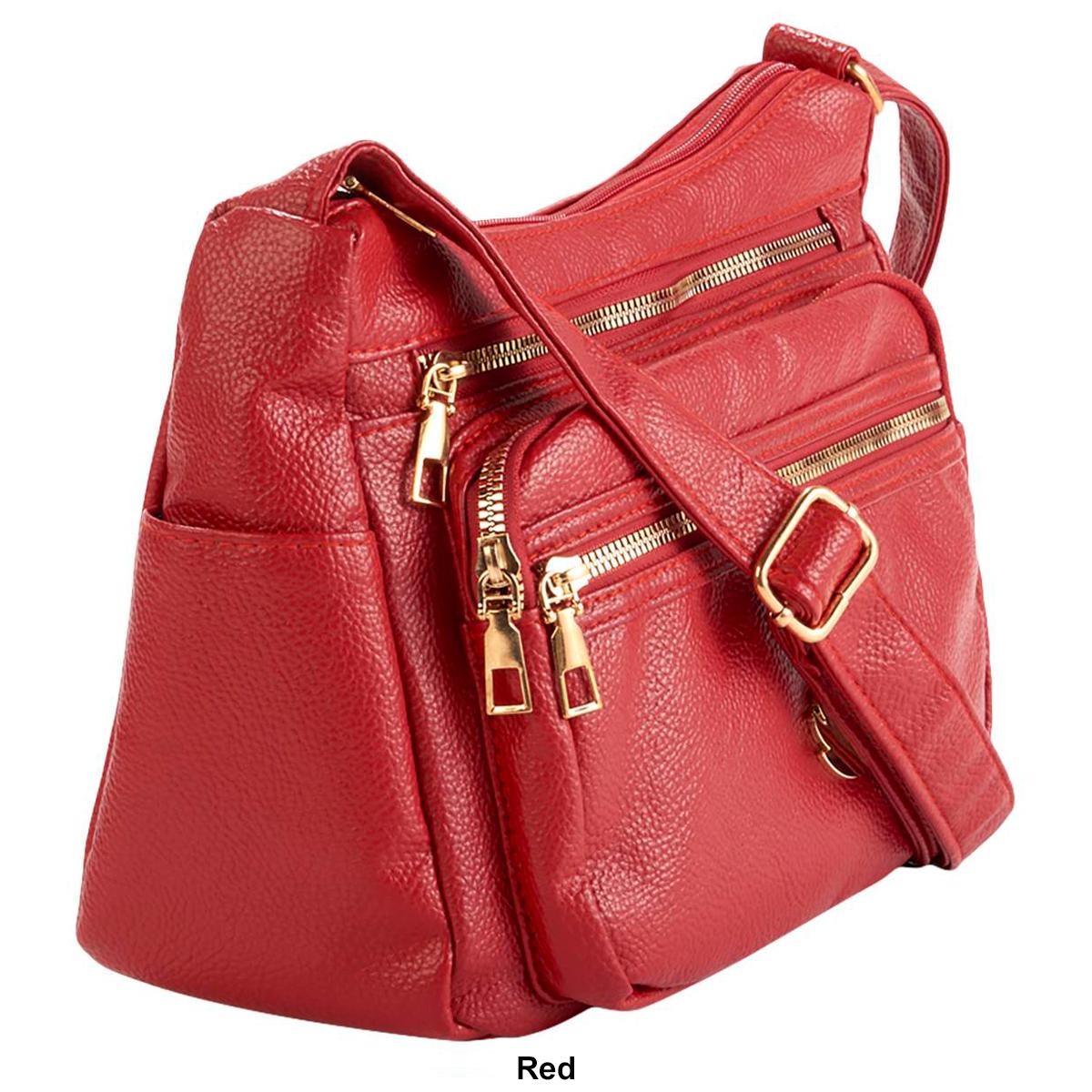 Description Pattern: SolidTop zipper closureInterior: One zipper pocketExterior: Three front zipper pockets, two side slip pocketsAdjustable crossbody strapGold tone hardware...