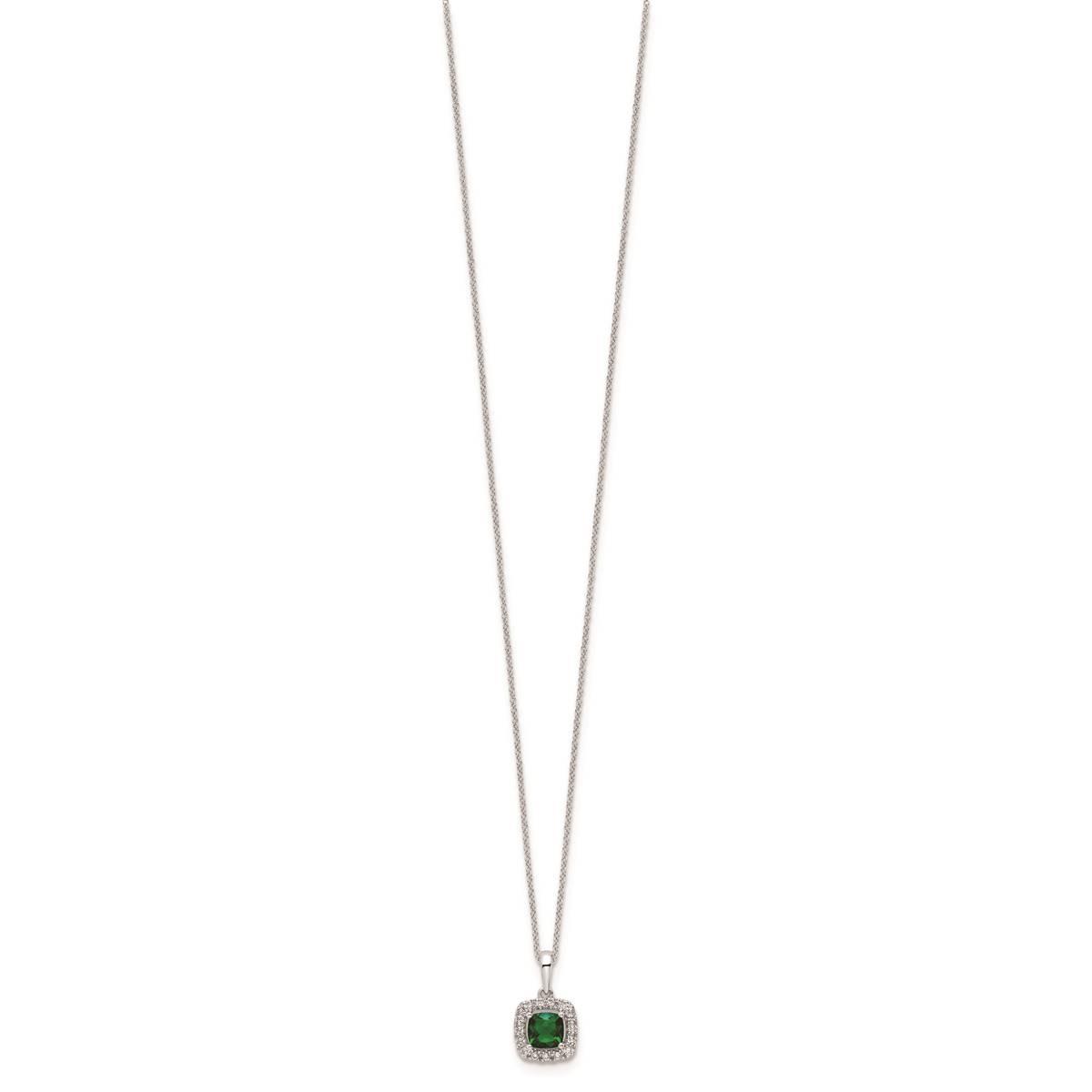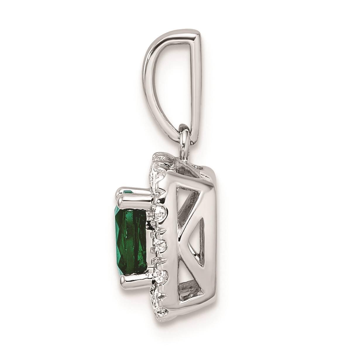 Give any outfit a touch of glamorous splendor with this beautiful Pure Fire 14kt. White Gold Emerald Halo Pendant. Fashioned from 14kt. white gold, this pendant displays a cushion-shaped 0.85 ctw, 6mm green emerald gemstone haloed by sparkling 0.28 ctw round lab-grown diamonds for a delicate sparkle. Polished for perfection, this pendant is sure to light up her eyes with joy.