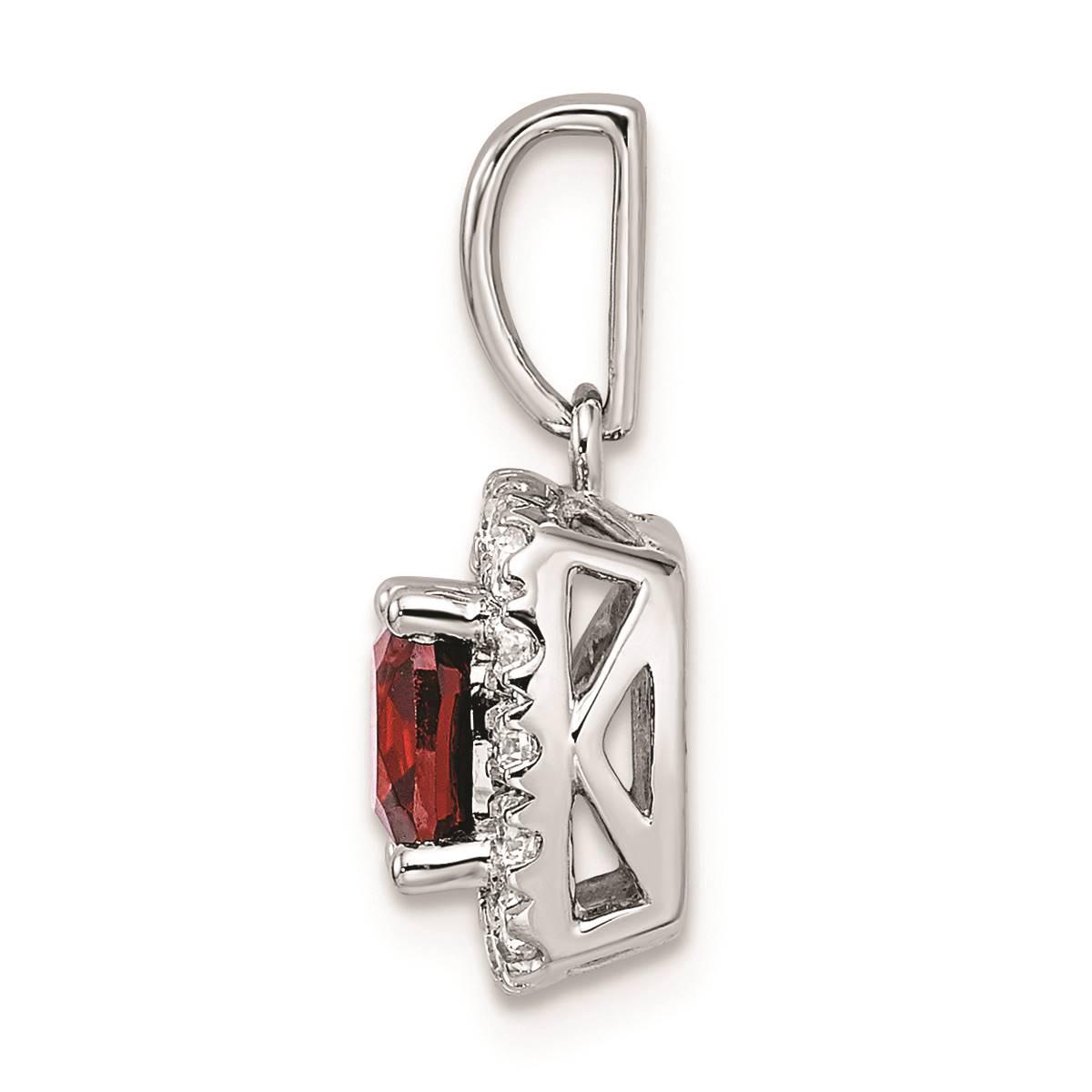 Give any outfit a touch of glamorous splendor with this beautiful Pure Fire 14kt White Gold Lab Grown Diamond & Garnet Halo Pendant. Fashioned from 14kt. white gold, this pendant displays a cushion-shaped 1.25 ctw, 6mm red garnet gemstone haloed by sparkling 0.28 ctw round lab-grown diamonds for a delicate sparkle. Polished for perfection, this pendant is sure to light up her eyes with joy.