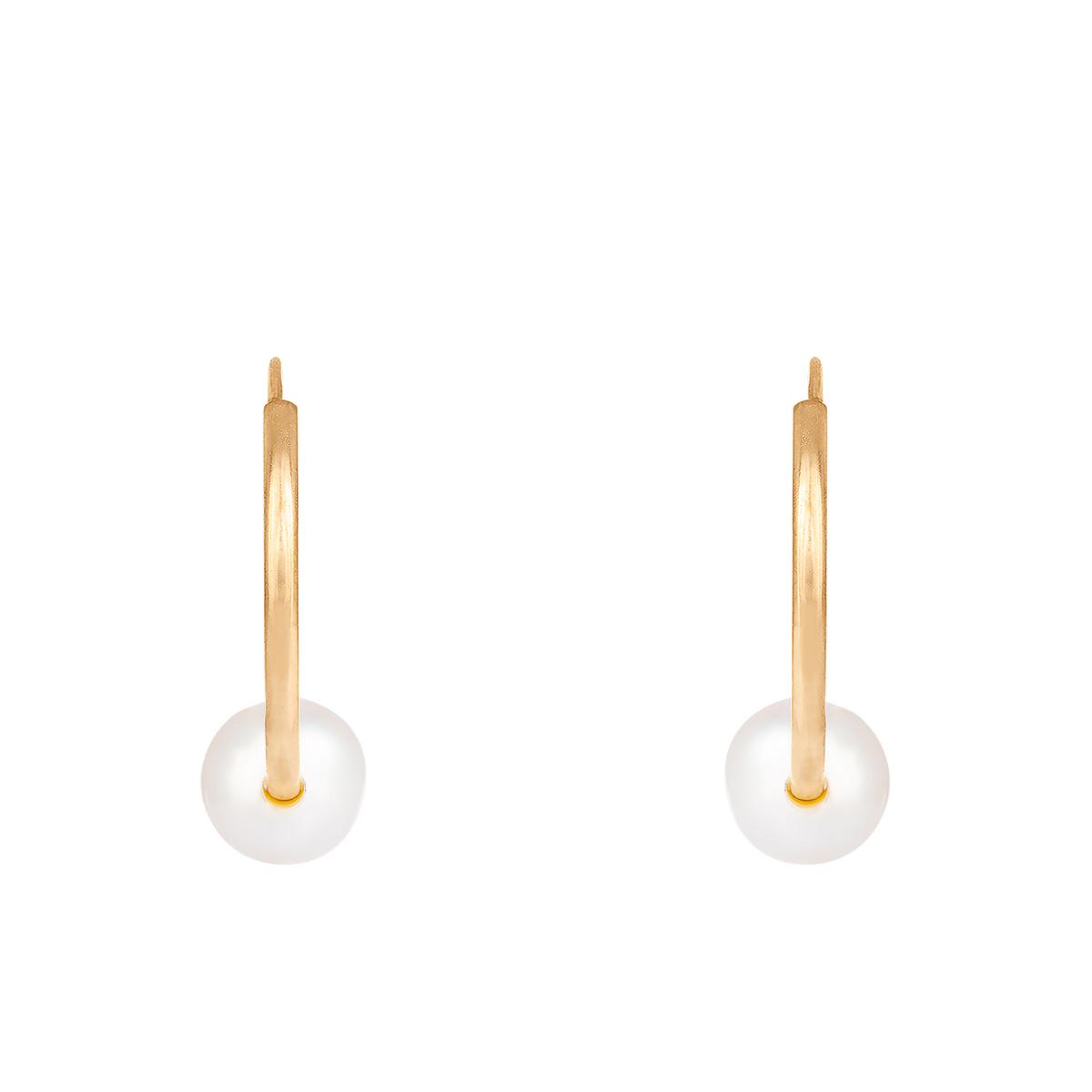 These beautiful Splendid Pearls 14kt. gold freshwater pearl 14mm hoop earrings consist of pearls with an excellent luster and clean surface.
