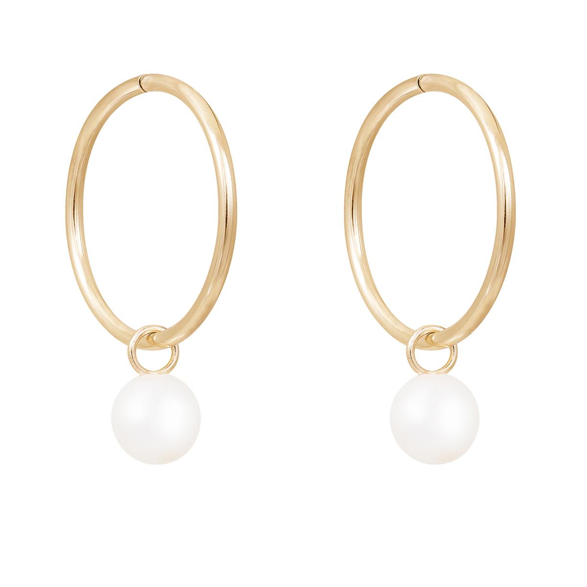 This beautiful Splendid Pearls 14kt. gold pearl 14mm hoops earrings consist of pearls with an excellent luster and clean surface.