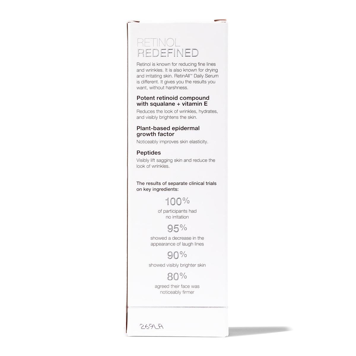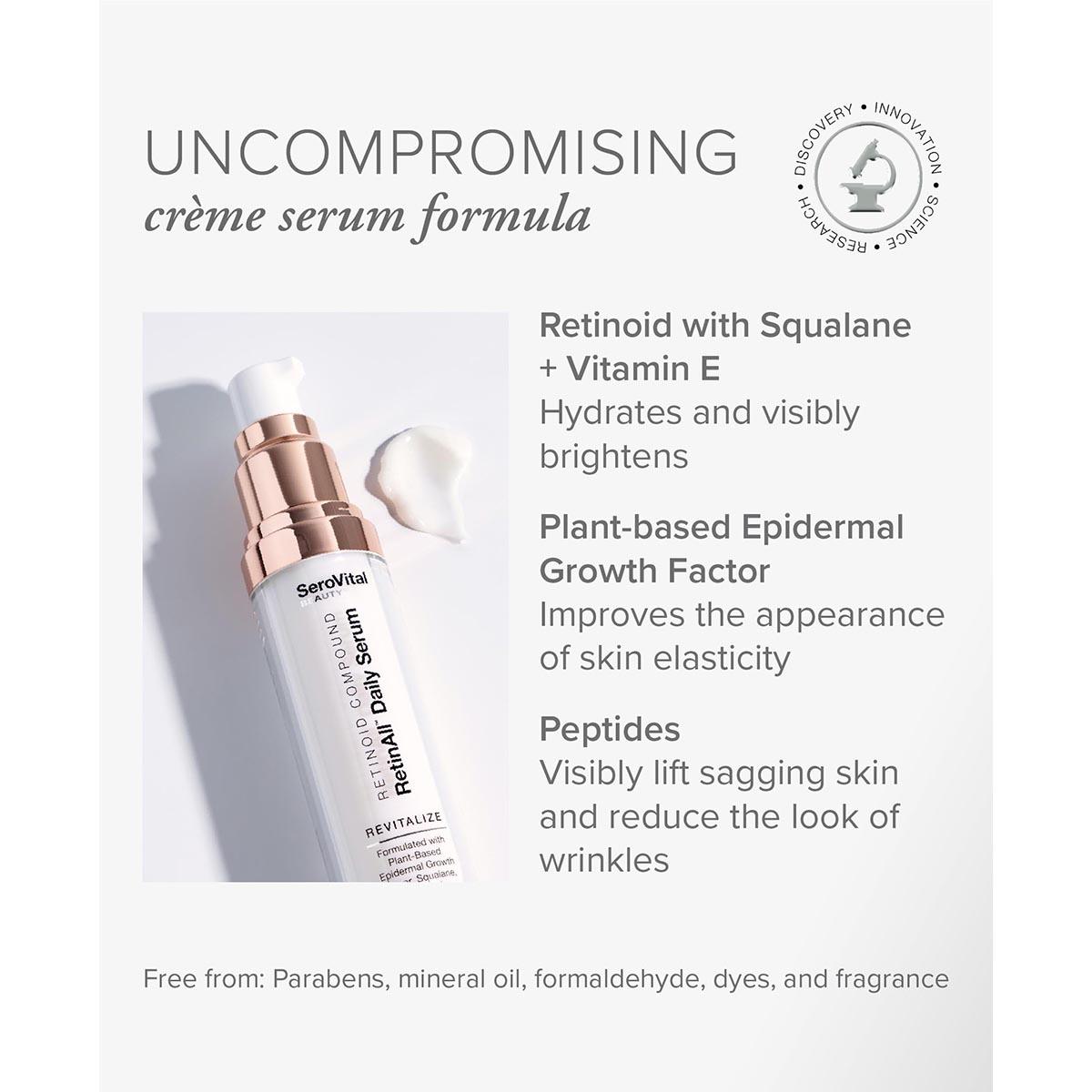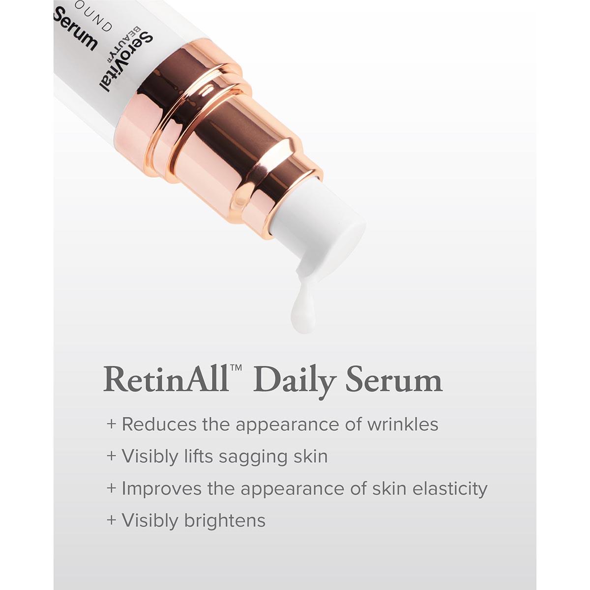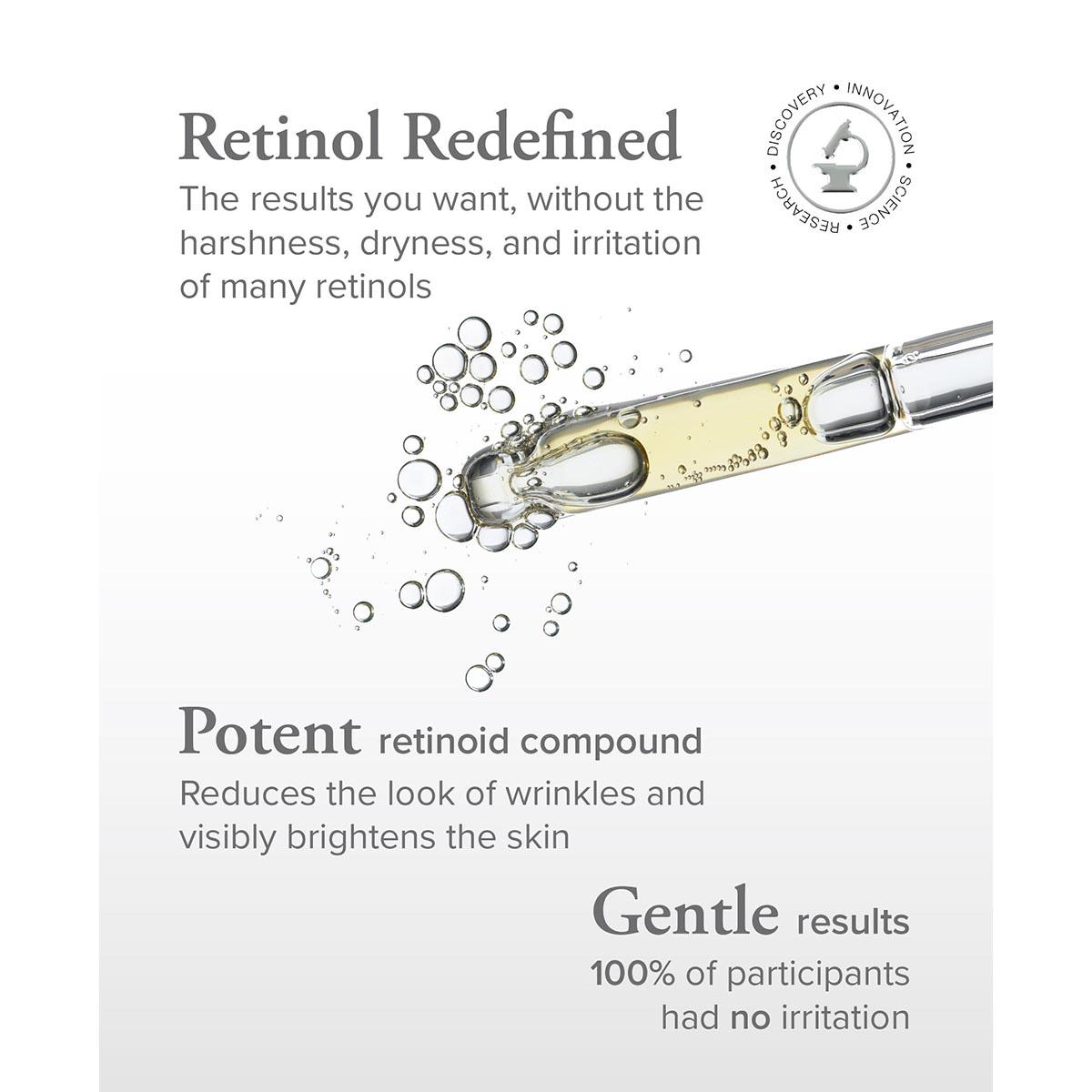Retinol is known for reducing fine lines and wrinkles. It is also known for drying and irritating skin. SeroVital® SuddenlySmooth Gentle RetinAll is different. It uses a potent retinoid bound with squalane, vitamin E, and linoleate - an essential skin nutrient. This compound has been clinically shown to hydrate the skin. In a clinical trial, 100% of participants had no irritation.