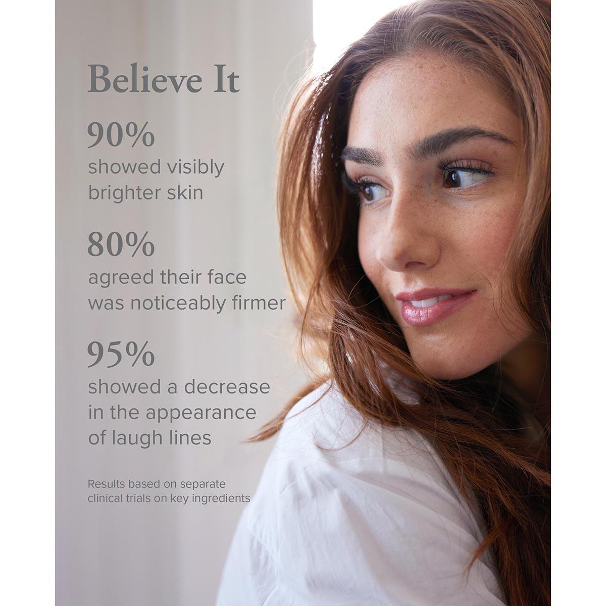 - Visibly brightens skin