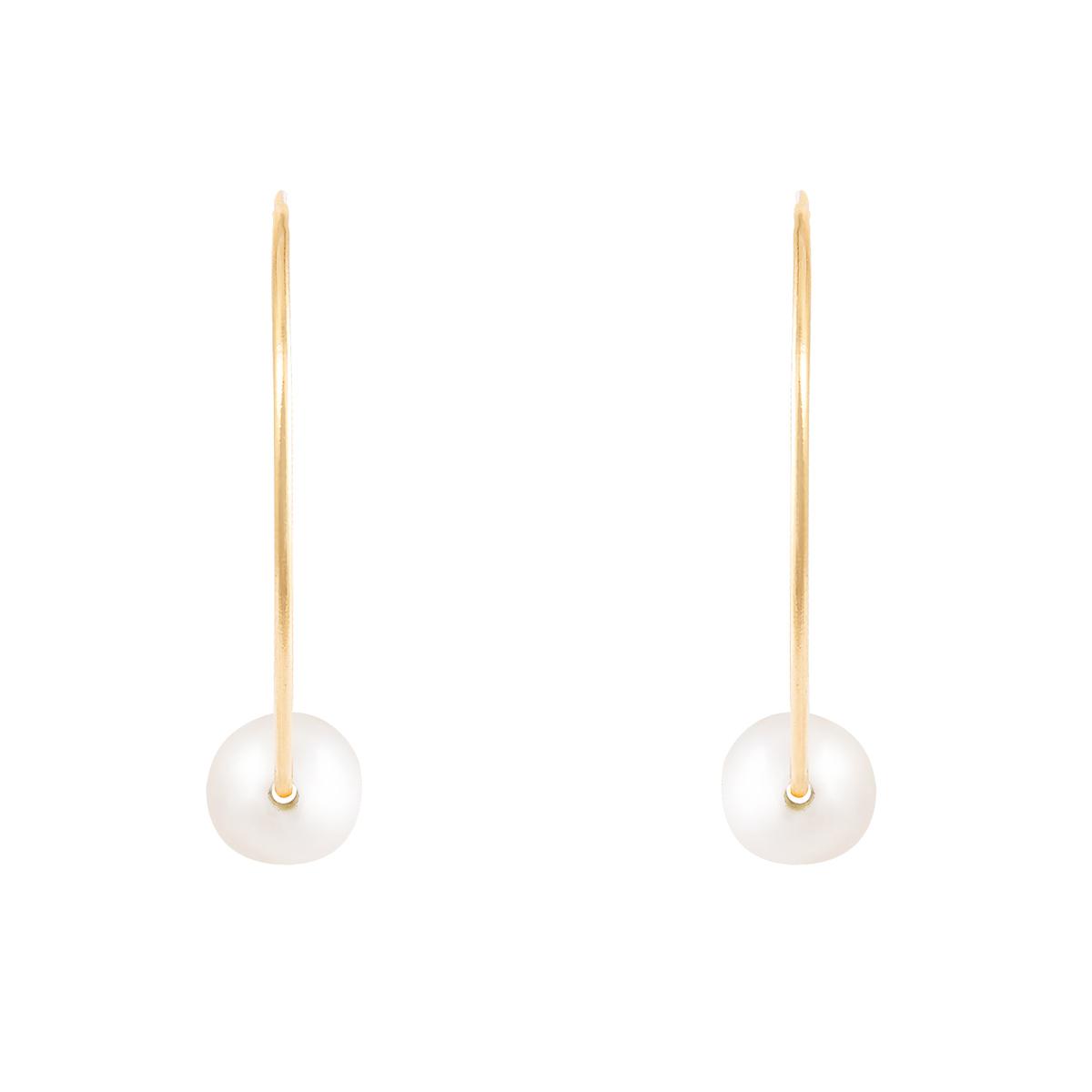 This beautiful Splendid Pearls 14kt. gold 25mm pearl hoop earrings consist of pearls with an excellent luster and clean surface.