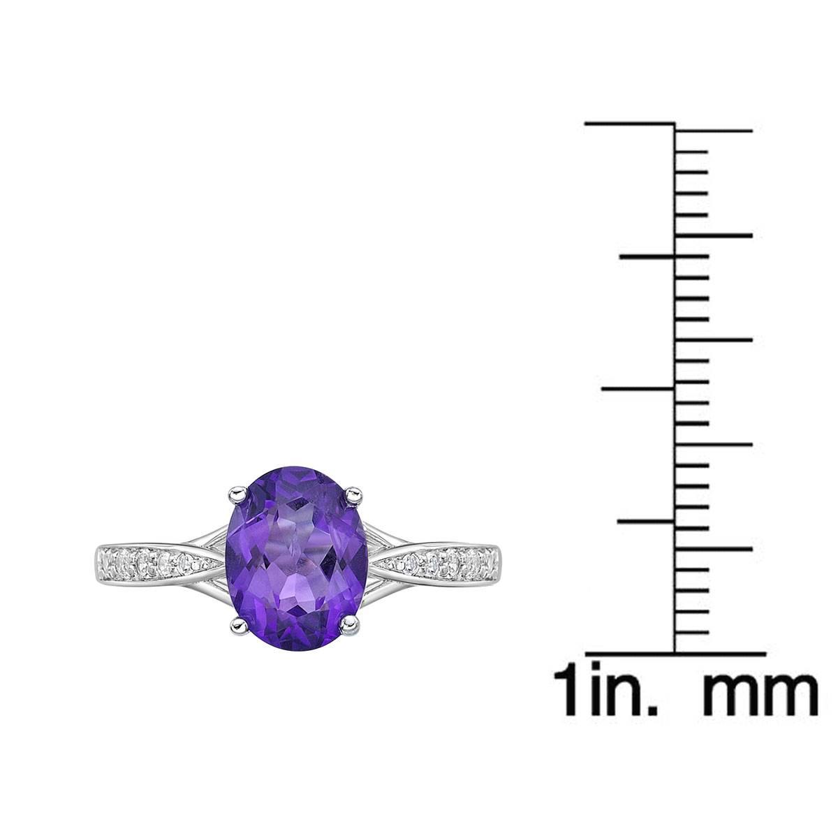 Description Crafted in sterling silver, this eye-catching ring features a dazzling 9x7mm oval-shaped genuine purple amethyst center stone. Glimmering white topaz accents decorate...