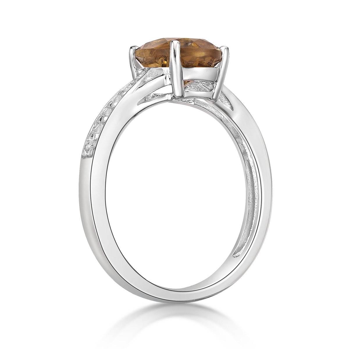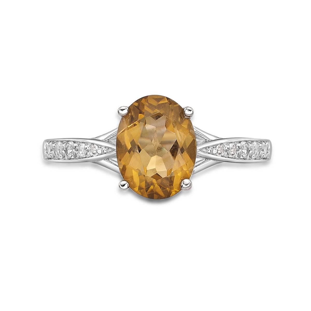 Crafted in sterling silver, this eye-catching ring features a dazzling 9x7mm oval-shaped genuine yellow citrine center stone. Glimmering white topaz accents decorate the ring´s exquisite shank. A splendor to behold, this gorgeous design is the perfect choice for any special occasion.