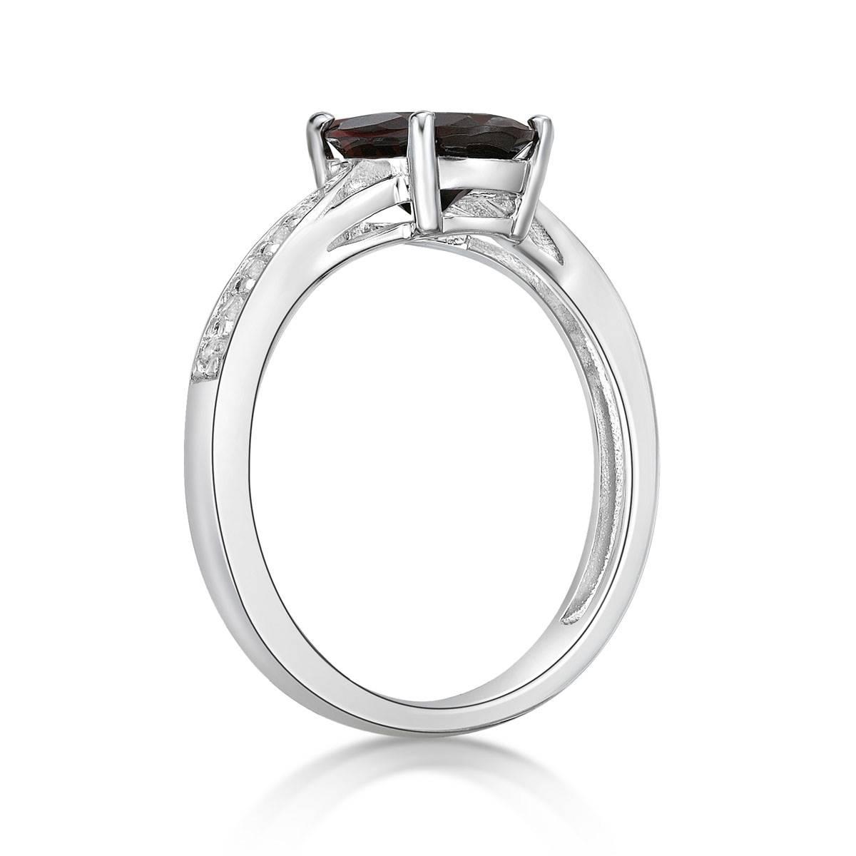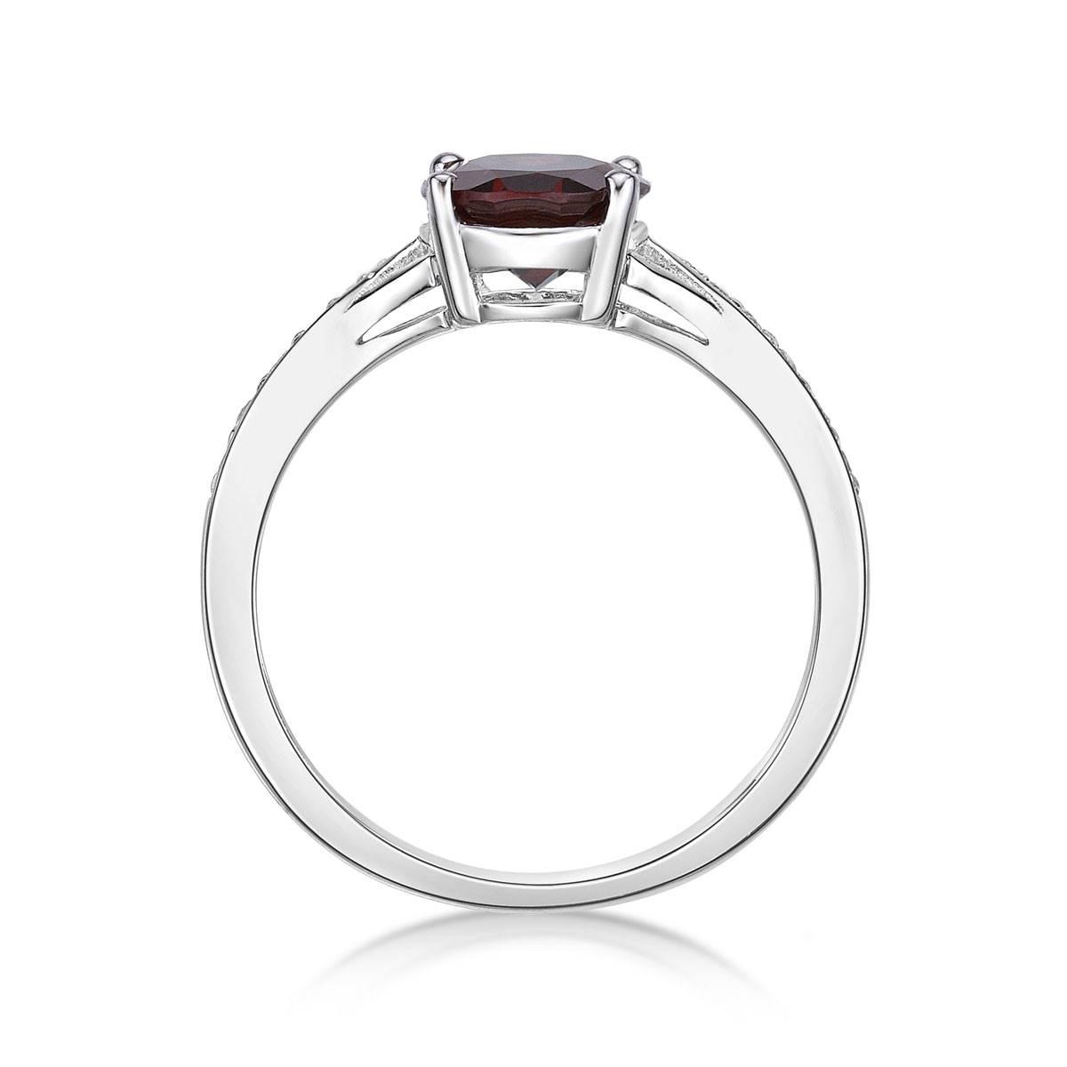 Crafted in sterling silver, this eye-catching ring features a dazzling 9x7mm oval-shaped genuine red garnet center stone. Glimmering white topaz accents decorate the ring´s exquisite shank. A splendor to behold, this gorgeous design is the perfect choice for any special occasion.
