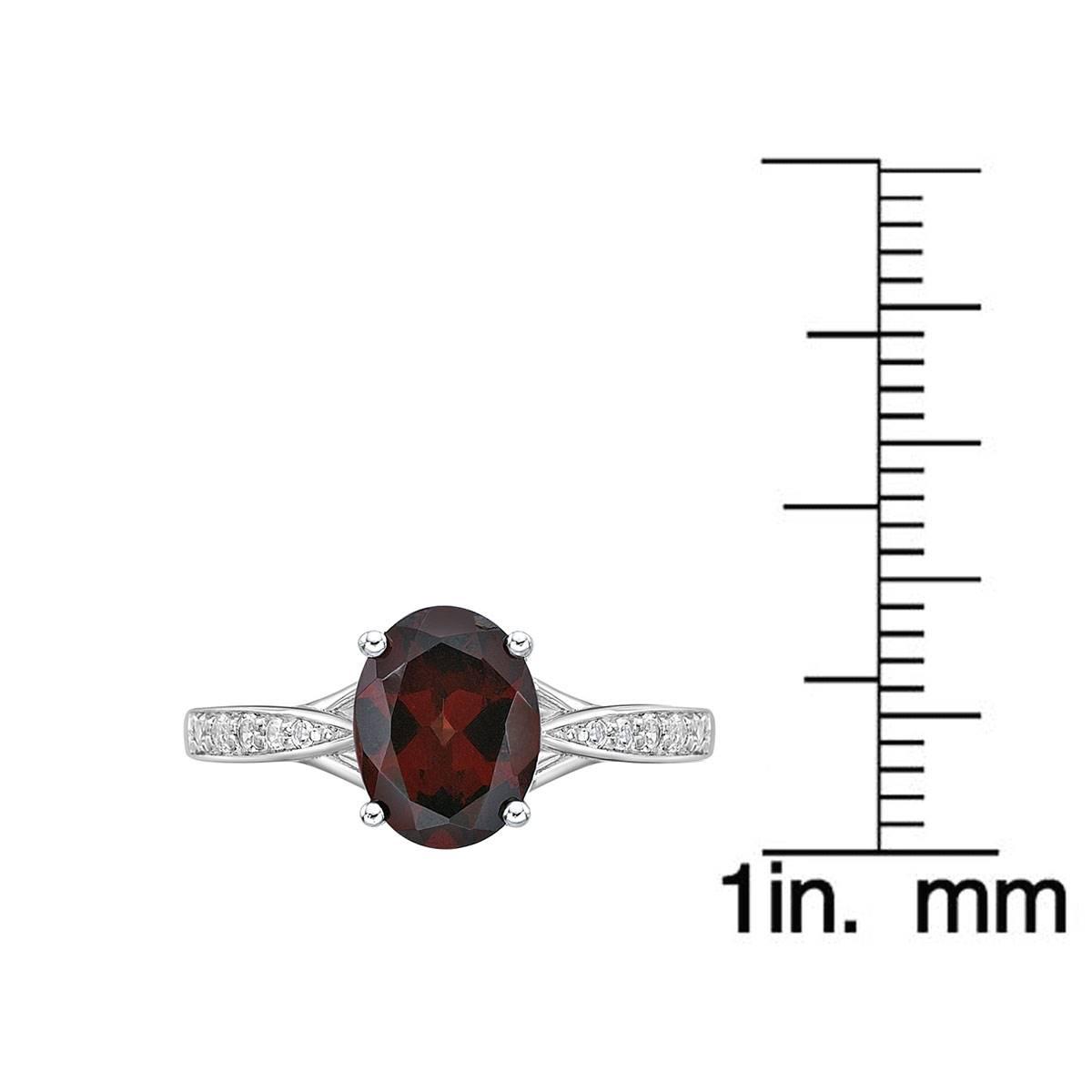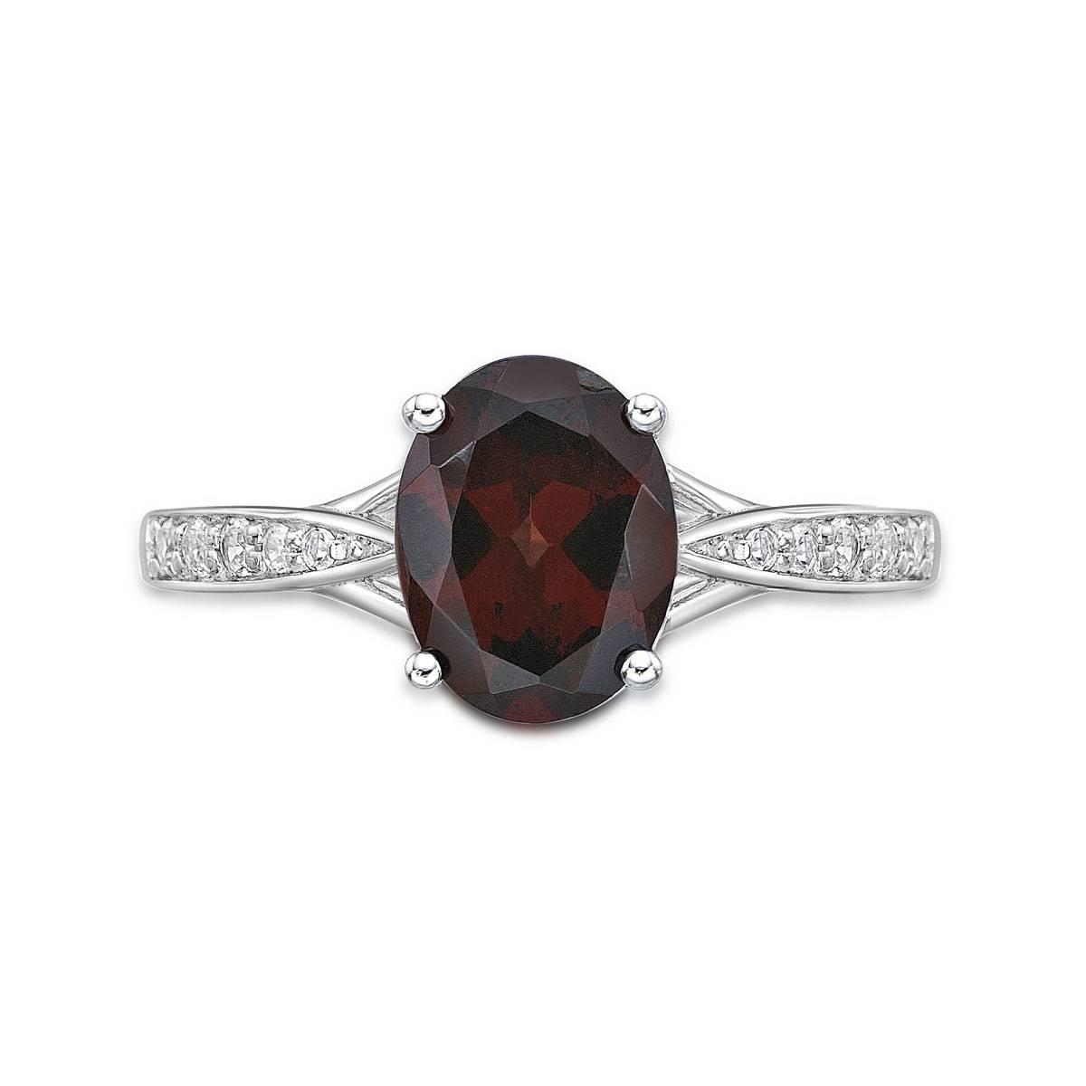 Description Crafted in sterling silver, this eye-catching ring features a dazzling 9x7mm oval-shaped genuine red garnet center stone. Glimmering white topaz accents decorate the...