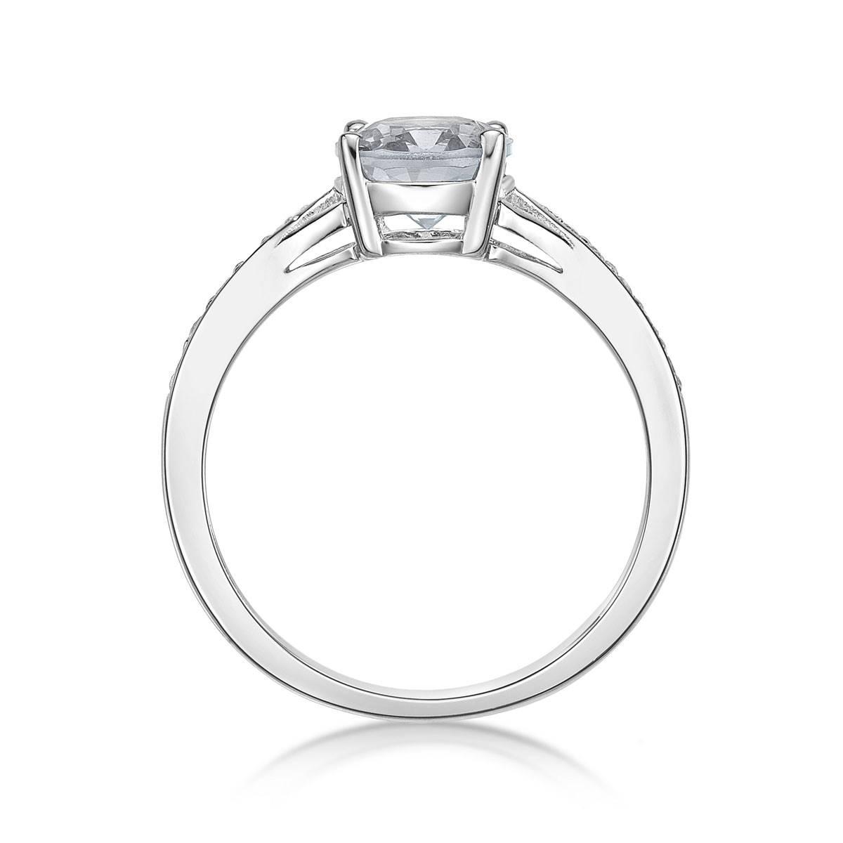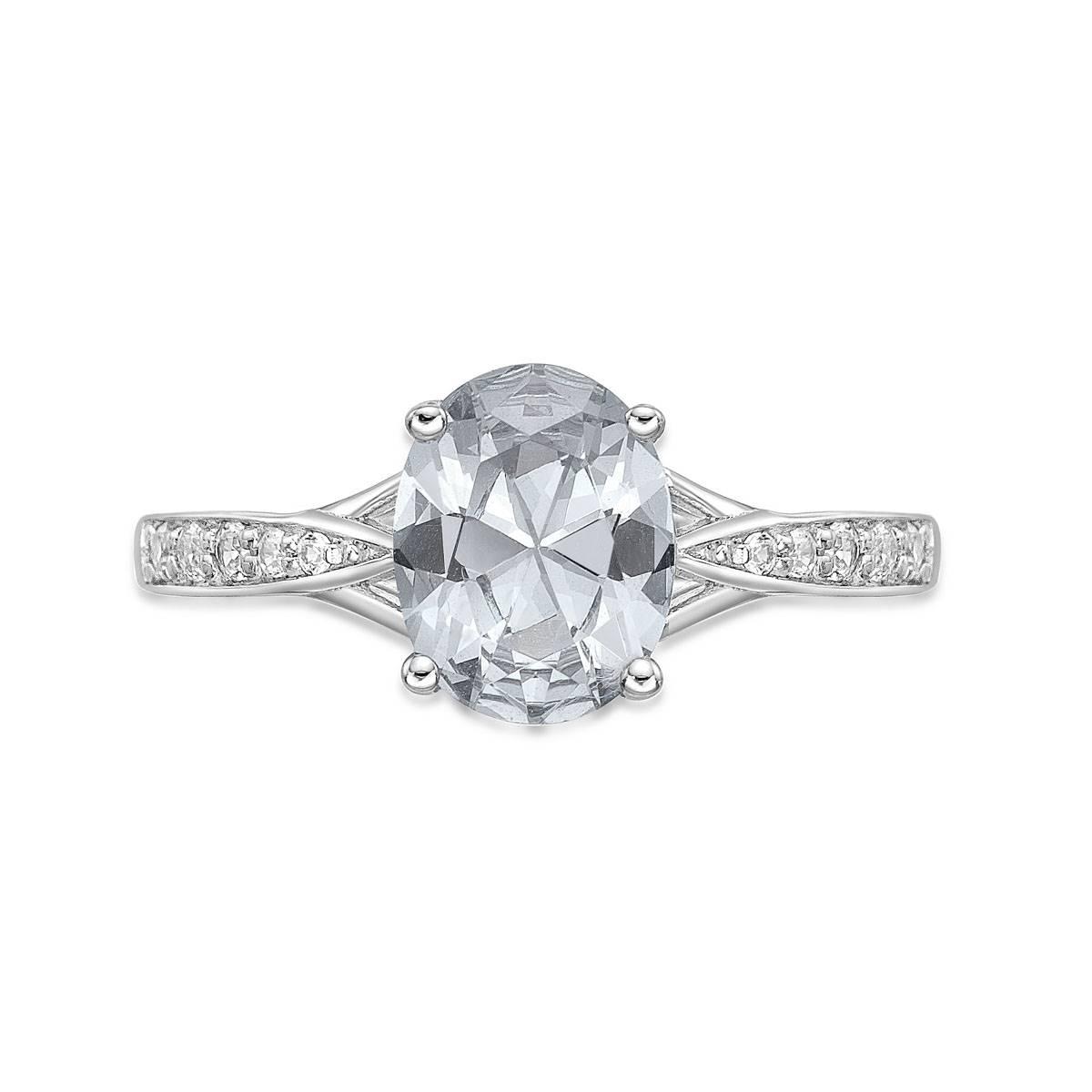 Crafted in sterling silver, this eye-catching ring features a dazzling 9x7mm oval-shaped genuine white topaz center stone. Glimmering white topaz accents decorate the ring´s exquisite shank. A splendor to behold, this gorgeous design is the perfect choice for any special occasion.