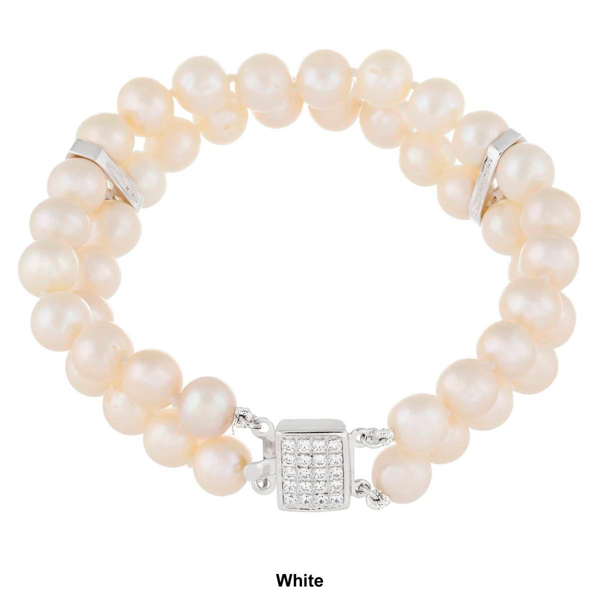 This beautiful Splendid Pearls sterling silver double row pearl bracelet consists of pearls with an excellent luster and clean surface.
