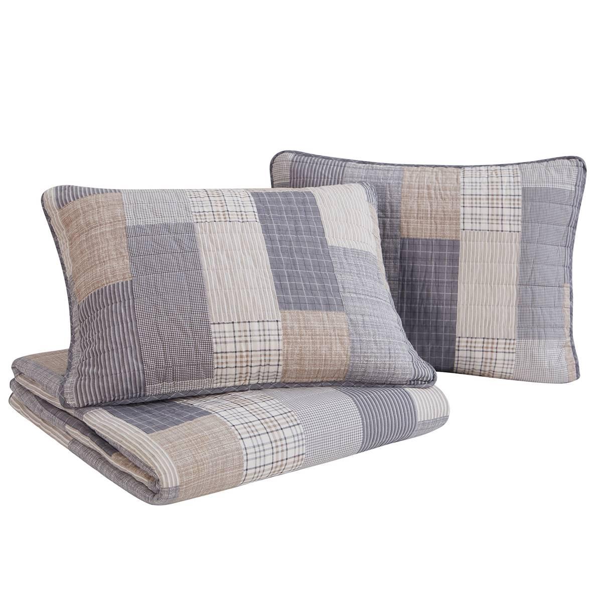 Home Retreat Lakeshore Plaid Grey Soft Cotton 2pc. Quilt Set