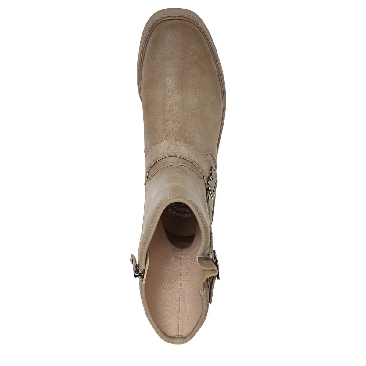 These Womens Dr. Scholl´s VIP Mid-Calf Boots look as good as they feel. The boots are sustainably crafted, with linings and topcloth made from recycled plastic bottles. Features soft square toe, strap and buckle details, and 1 and 1/4 inch platform sole.