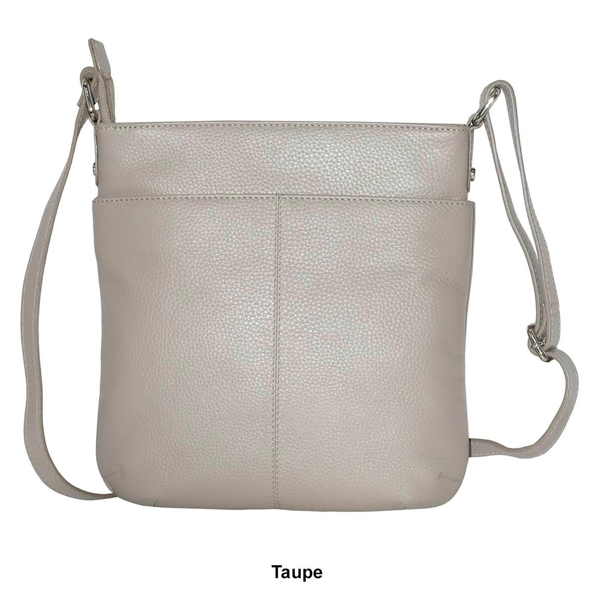 • Features: Top zip closure, Front zipper pocket, Back slit pocket, Interior zippered wall pocket
