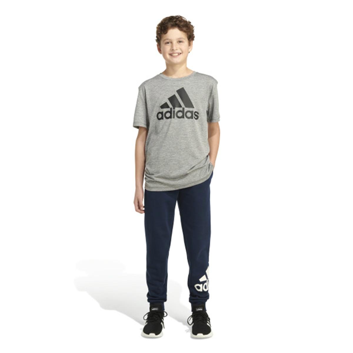 Description He can warm up or relax in these Boys (8-20) adidas® essential joggers. The cotton blend fleece feels soft and warm for hours of comfort while an adjustable elastic...