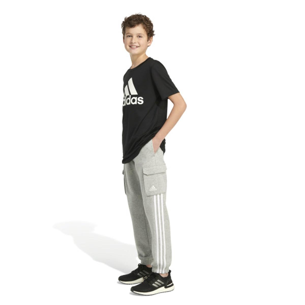 Description Kids can warm up or relax in these Boys (8-20) adidas® cargo 3-stripe sweatpants. The cotton blend fleece feels soft and warm for hours of comfort, while an...