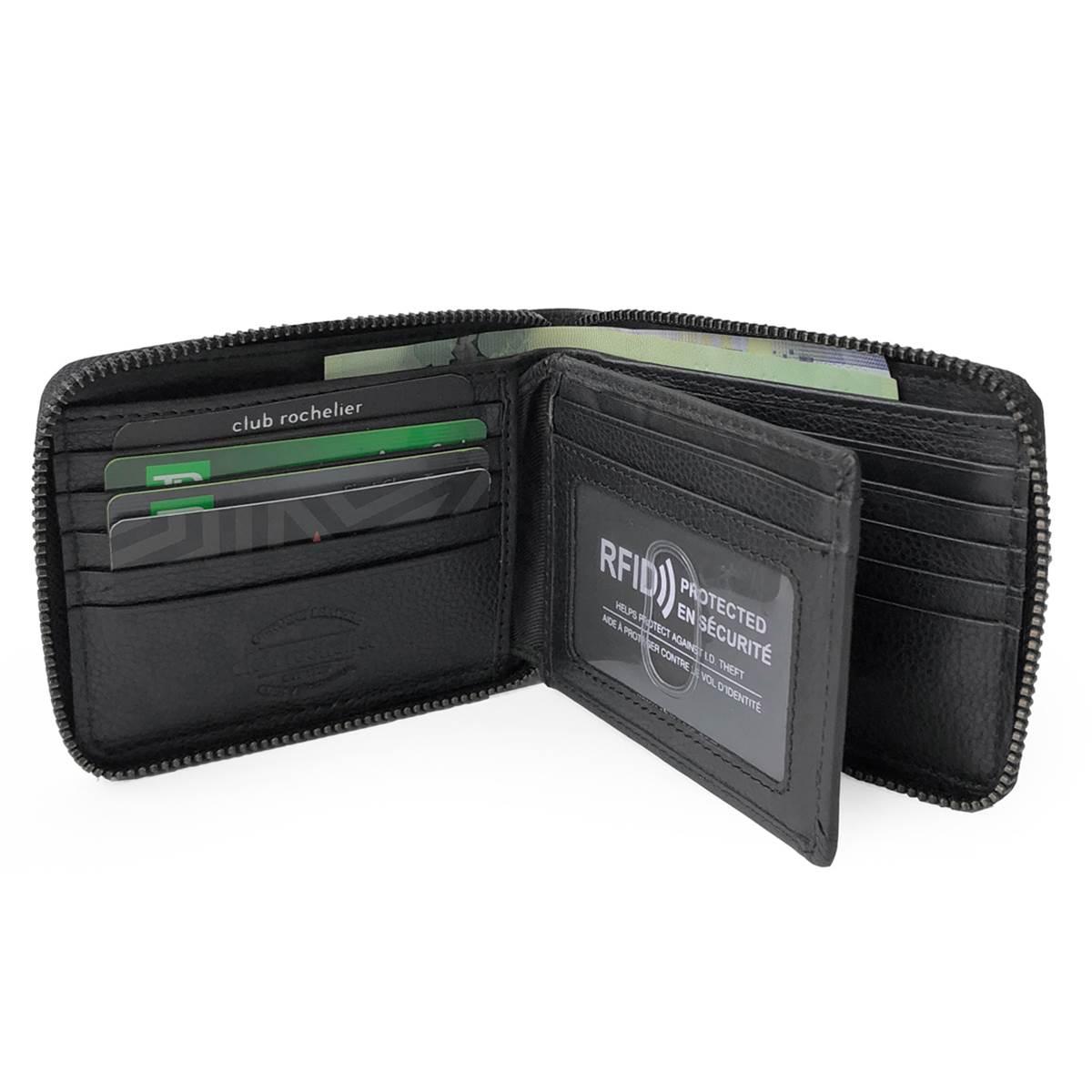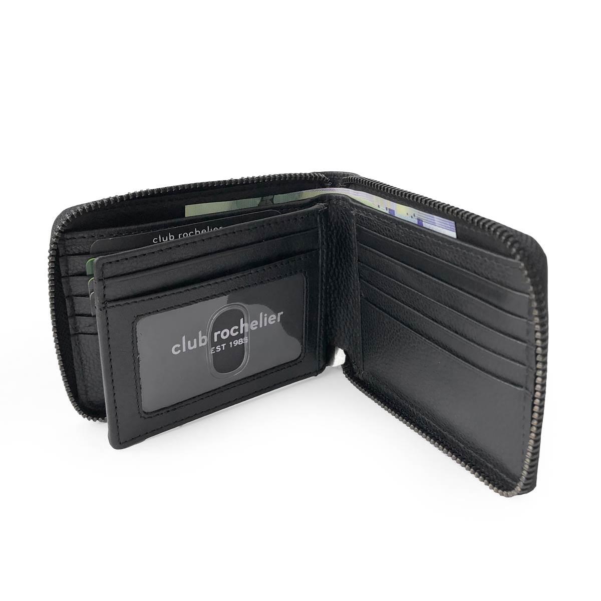 Description This Mens Club Rochelier Onyx Full Leather RFID Wallet has a classic and functional design. Open up the secured zipper closure and you will find numerous card slots...