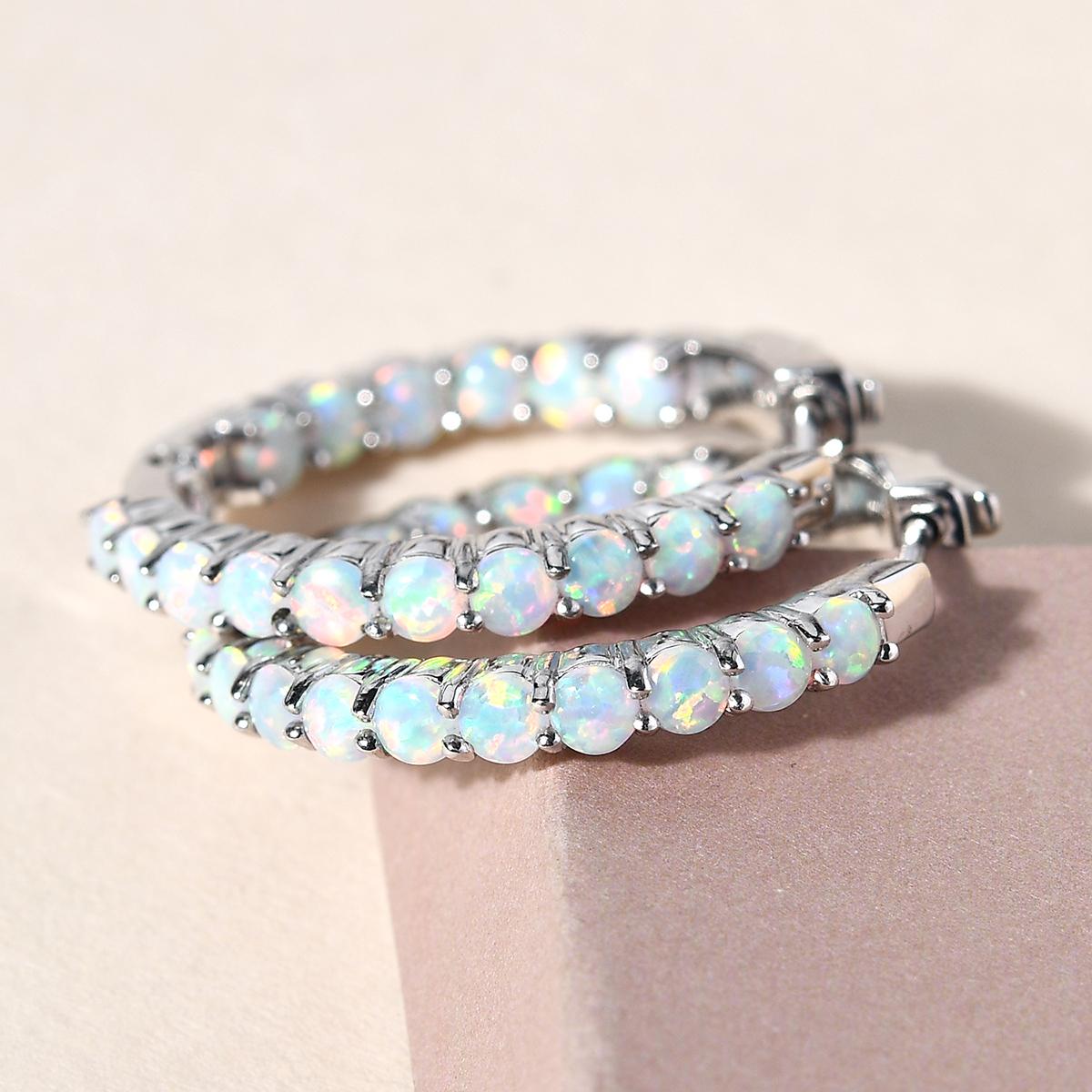 Sparkle and shine all day or night wearing these Gemstone Classics™ sterling silver created opal in out hoop earrings.