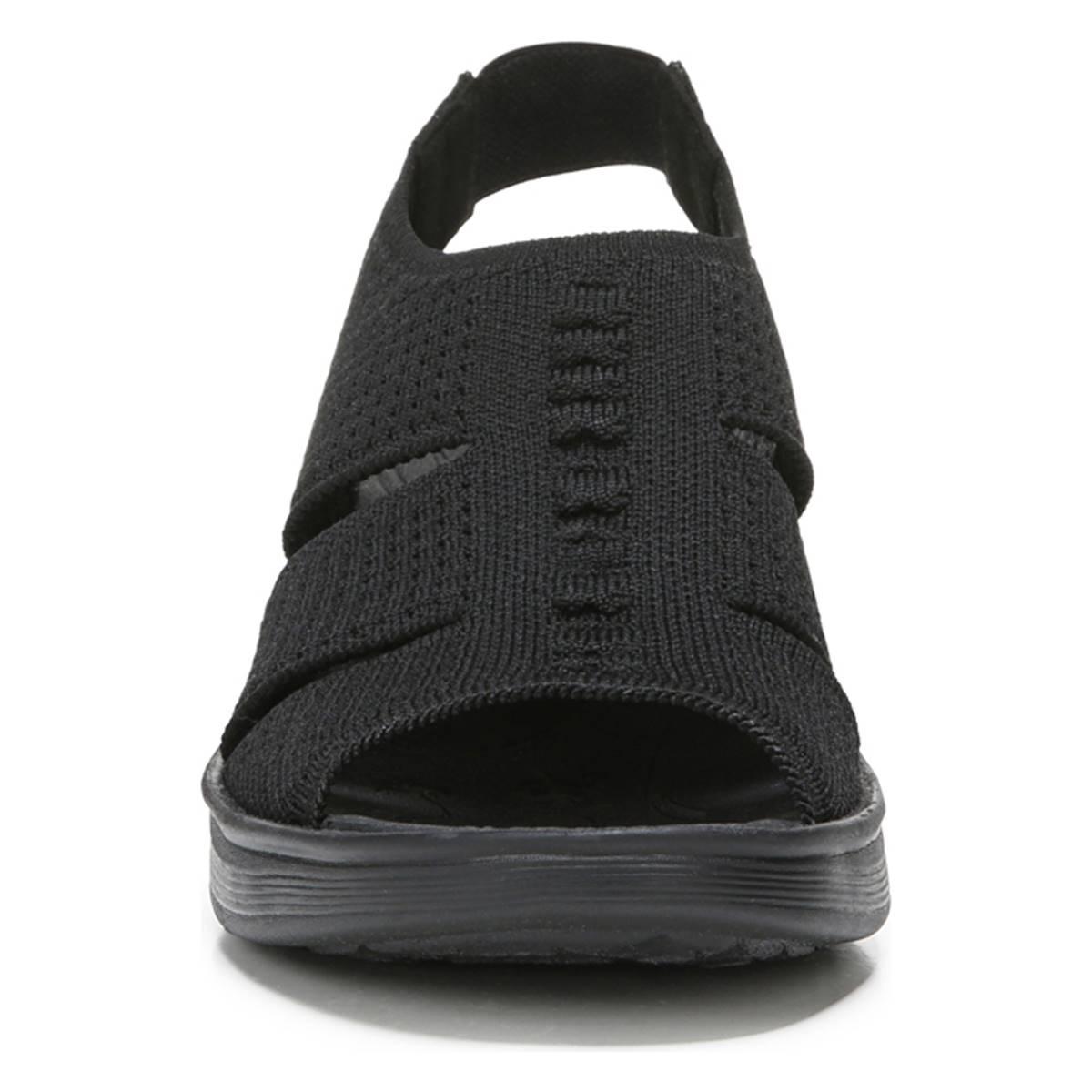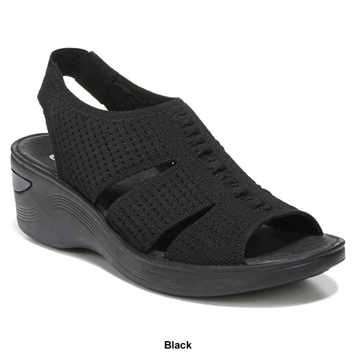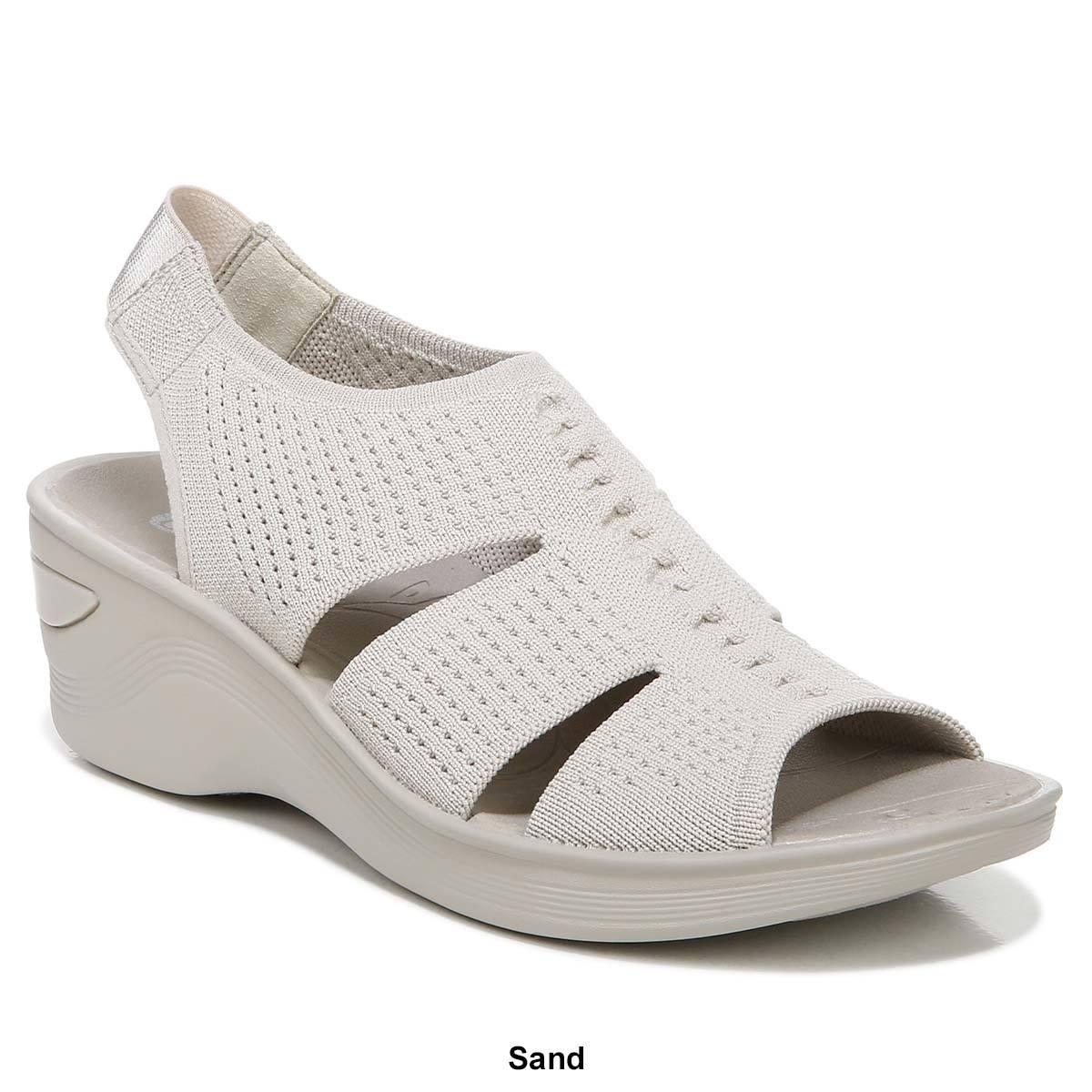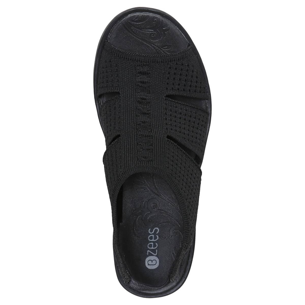 Description Live life on the "wedge" in these Womens BZees Double Up Wedge Sandals. Features stretch engineered knit upper, peep toe, slip-on fit, and sling strap. You’ll feel...