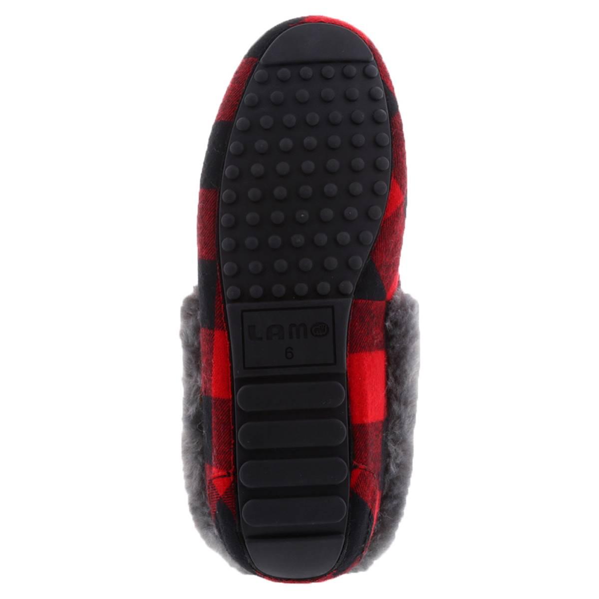 Description These Womens LAMO sheepskin Aussie Moc Buffalo plaid slippers are the perfect go-to shoes to wear year-round. Can be worn outside thanks to its TPR outsole, but the...