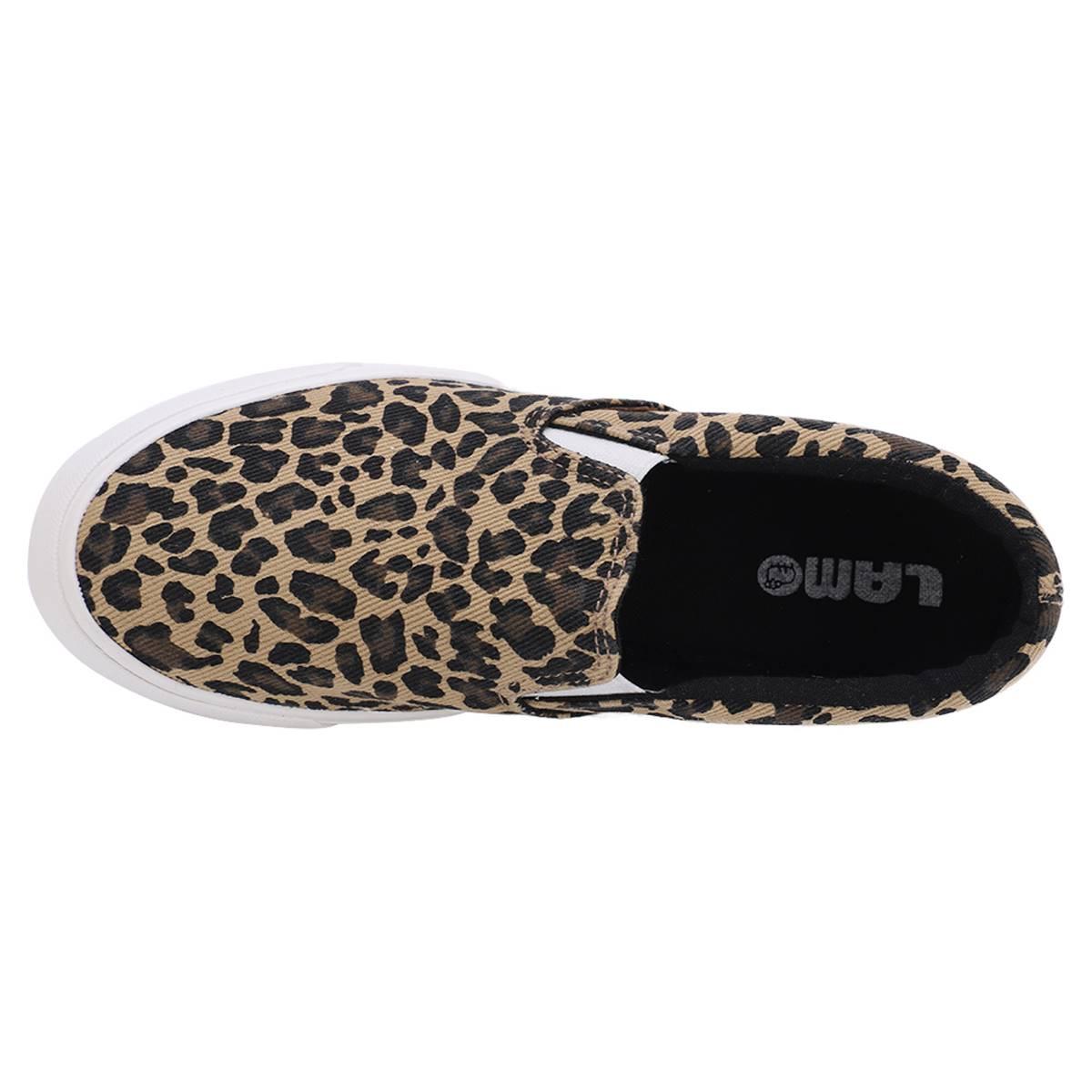 Description Simple and stylish, these Womens LAMO sheepskin Piper slip-on cheetah fashion sneakers will keep you on trend. Features elastic gores which fit you nicely & snug atop...