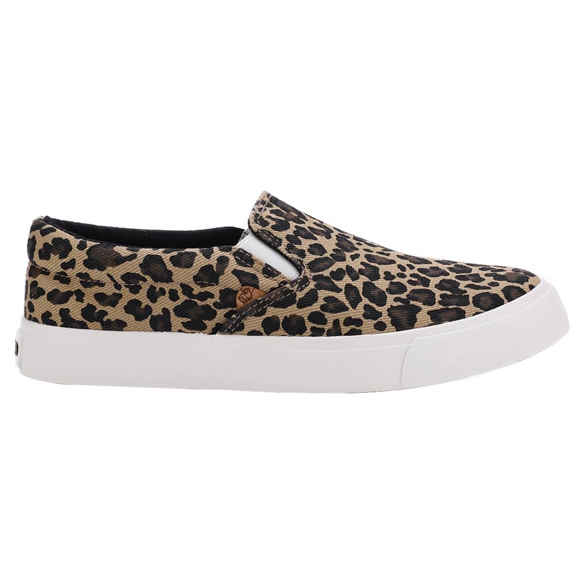Simple and stylish, these Womens LAMO sheepskin Piper slip-on cheetah fashion sneakers will keep you on trend. Features elastic gores which fit you nicely & snug atop a memory foam footbed and vulcanized outsole.