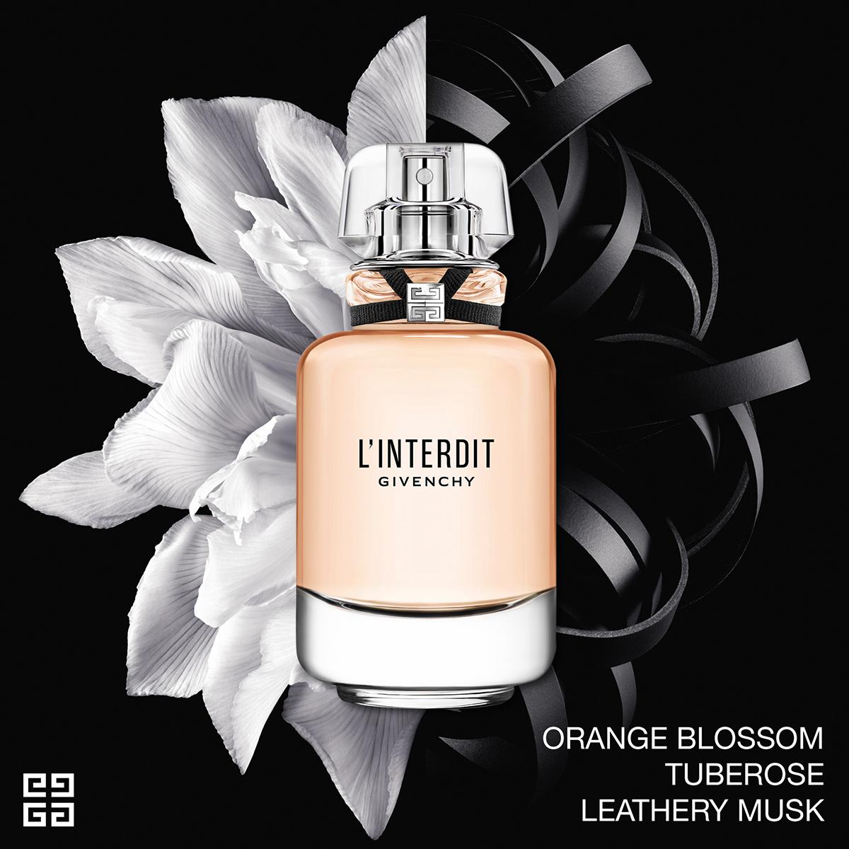 Orange and Bergamot open L’Interdit Givenchy Eau de Toilette with a citrus luminosity. The perfume’s white floral bouquet reveals Jasmine and Tuberose at its heart. This is juxtaposed with a smoldering base of Vetiver, Patchouli, and Musk. Experience the thrill of the forbidden with L’Interdit, a deeply sensual fragrance for women that invites you to embrace your singularity. Crafted in France by a glassmaker, the new L’Interdit Eau de Toilette bottle has been designed with a 10% reduction in glass weight. The fragrance is intensified by the warmth of your own body. Apply in the creases of your knees and elbows for a longer-lasting, stronger scent. Embodying the Givenchy couture aesthetic, the iconic perfume bottle features a new sleek, elongated contour and is adorned with a stylish 4G tassel.