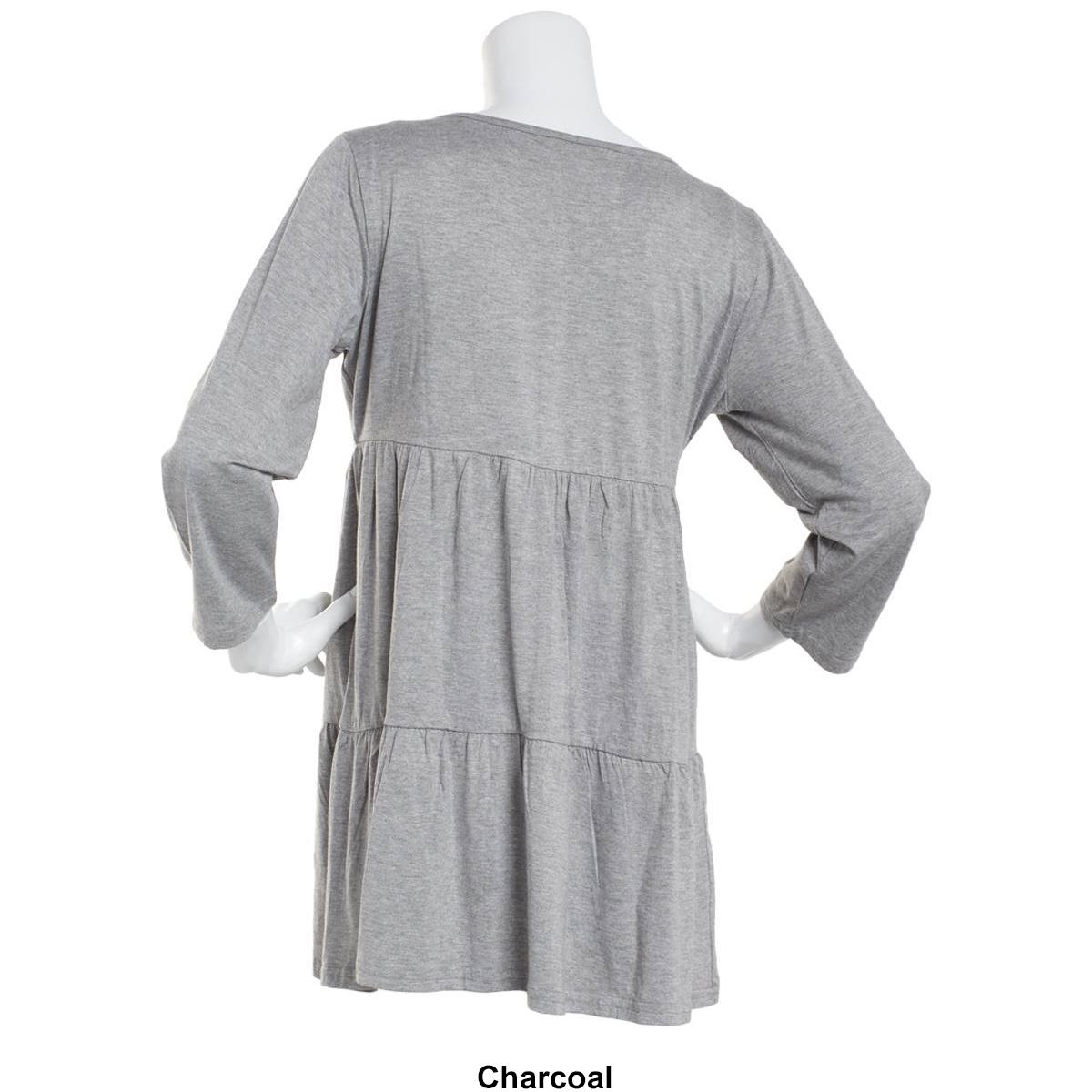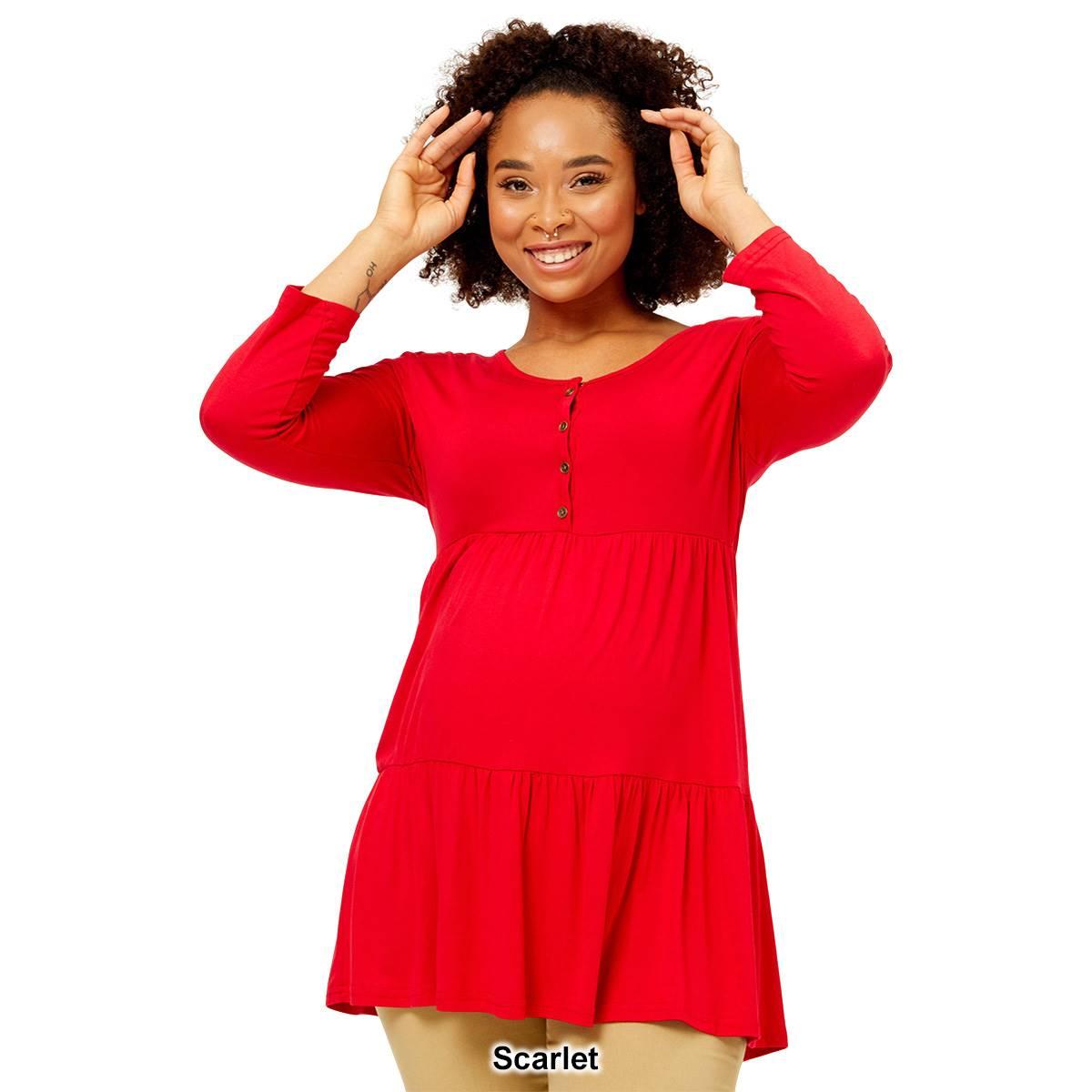 Description Be cute and comfy wearing this Womens Times Two solid Maternity top. Perfect for any event, this tee features a tiered waist, long bracelet sleeves, and a scoop...