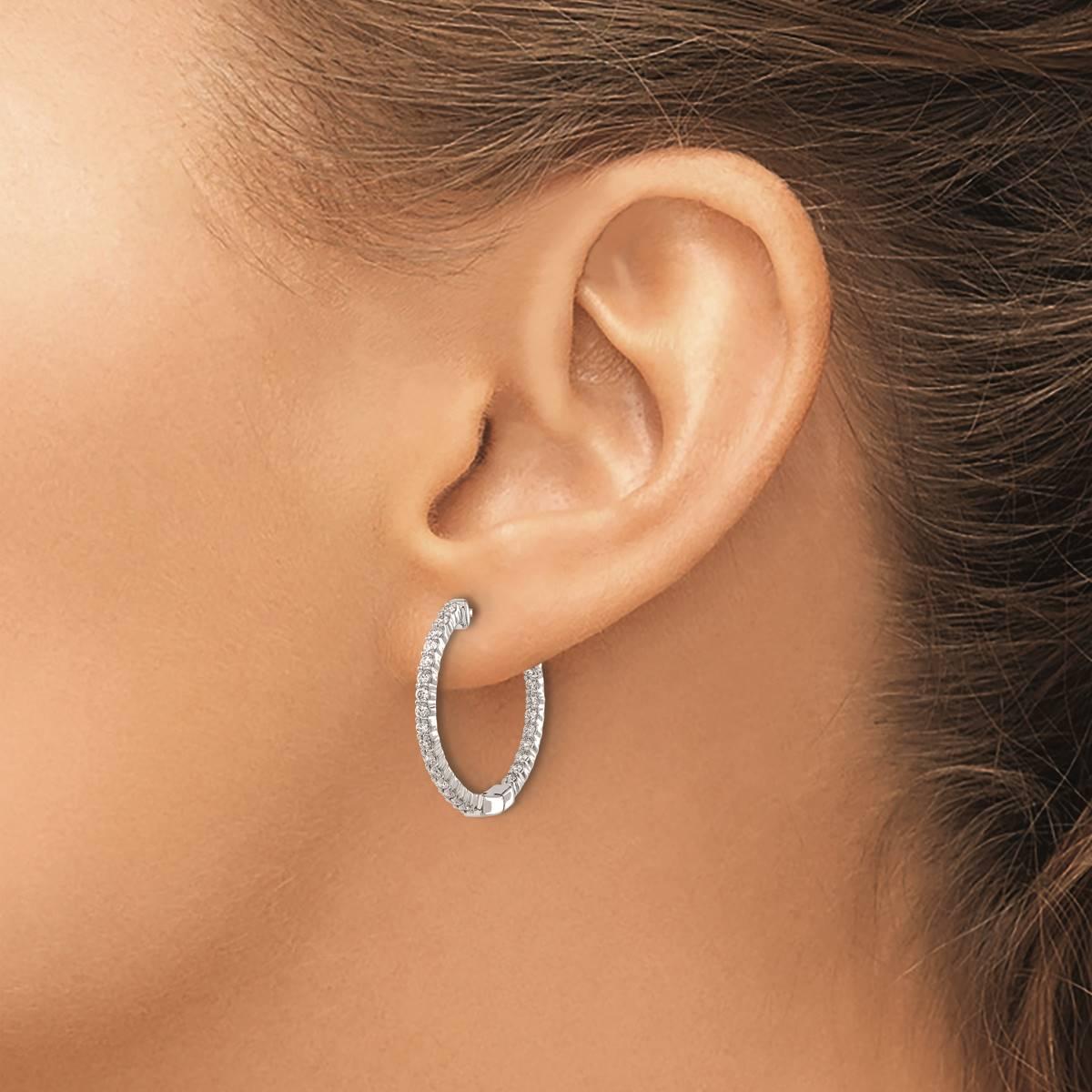 Lend a stunning look to your wardrobe with this Pure Fire 14kt. white gold lab-grown diamond hoop earrings. Designed in 14kt. white gold, these earrings boast sparkling 0.64 ctw. lab-grown round diamonds along the outside facing edge and inside back edge. Polished for extra shine, these hoops are secured with post, notch, and lock clasps.