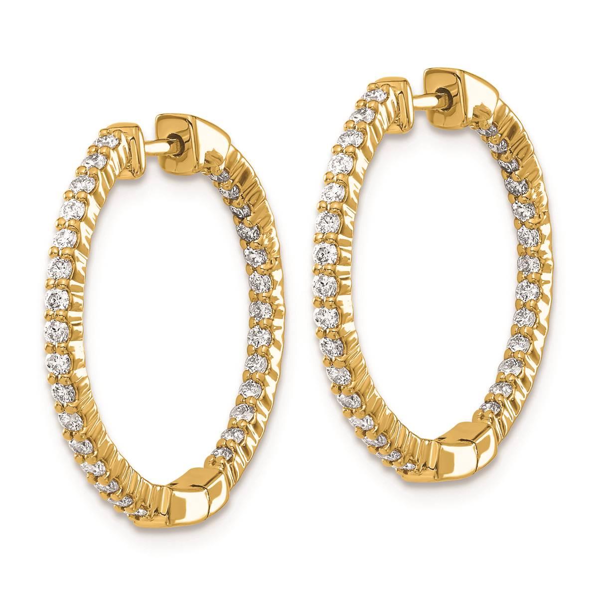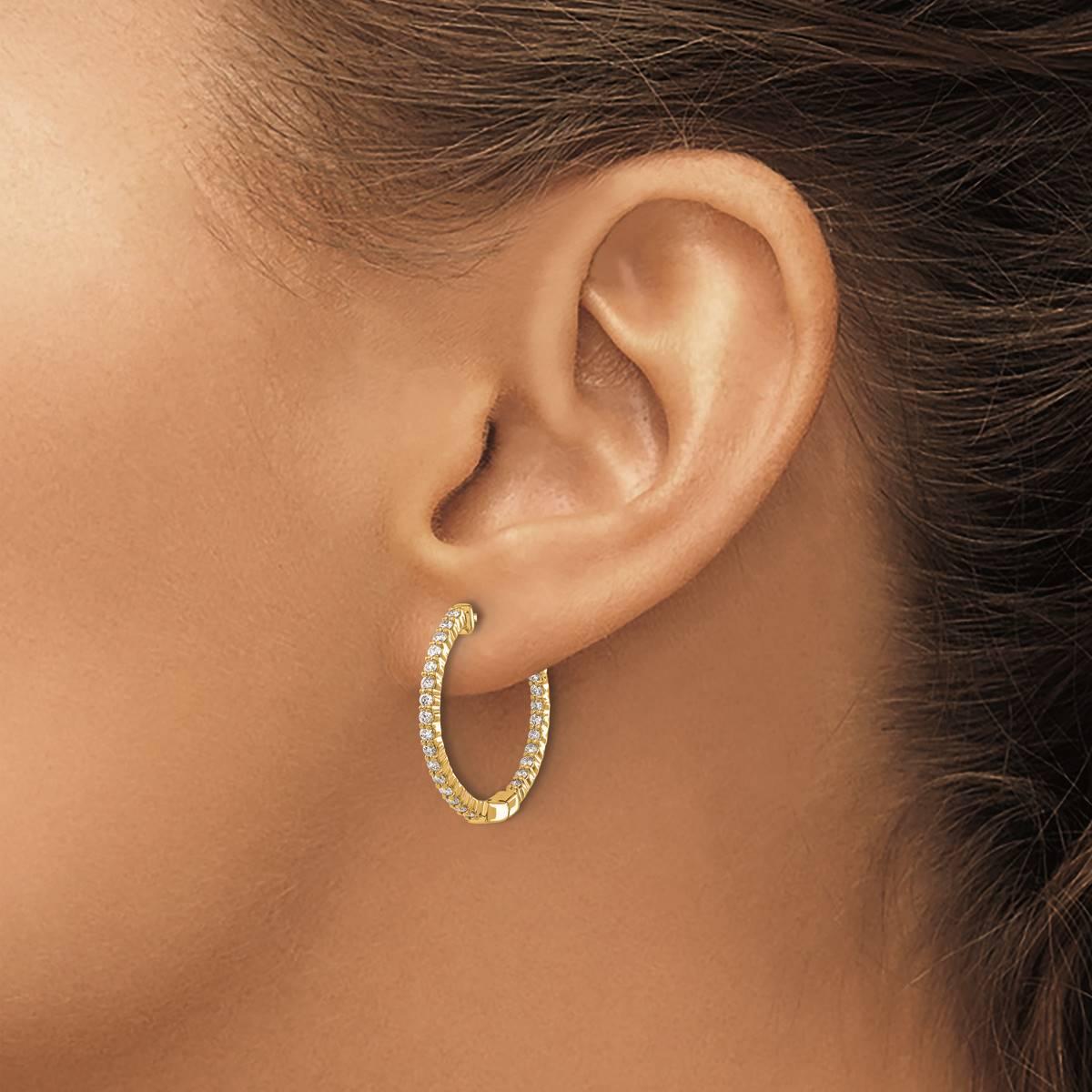 Lend a stunning look to your wardrobe with these Pure Fire 14kt. yellow gold lab-grown diamond round hoop earrings. Designed in 14kt. yellow gold, these earrings boast sparkling 0.64 ctw. lab-grown round diamonds along the outside facing edge and inside back edge. Polished for extra shine, these hoops are secured with a post, notch, and lock clasps.