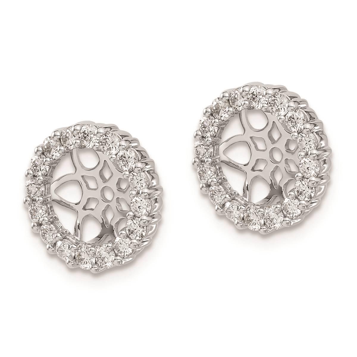 For that extra shimmer and shine these Pure Fire 14kt. white gold lab-grown diamond 7.5mm earring jackets are beautifully crafted from polished 14kt. white gold. Flaunts sparkling 0.69ctw. lab-grown diamonds and striking milgrain pattern with a 7.5mm opening. Transform the look of your ordinary studs to ultra-chic by pairing them with these earring jackets.