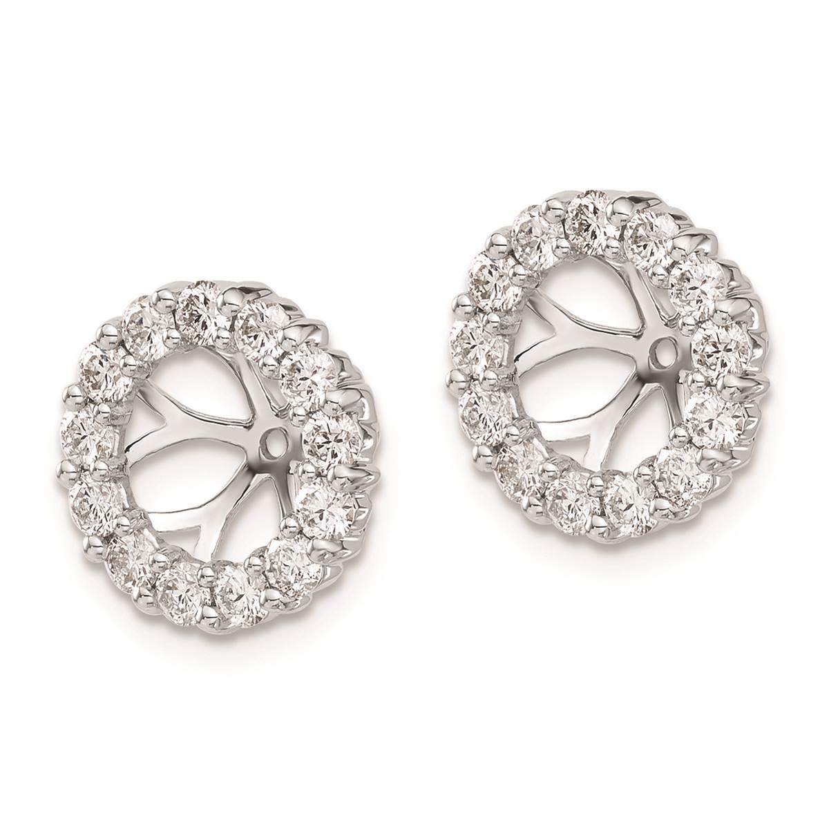 For that extra shimmer and shine these Pure Fire 14kt. white gold diamond 6.5mm round earring jackets are beautifully crafted from polished 14kt. white gold. Flaunts sparkling 1.04ctw. lab-grown diamonds and a striking milgrain pattern with a 6.5mm opening. Transform the look of your ordinary studs to ultra-chic by pairing them with these earring jackets.