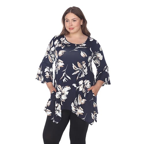 Description This Plus Size flattering tunic from White Mark drapes stunningly on your body. Bell sleeves add a festive flare to this versatile round neck tunic. Care: Hand Wash,...