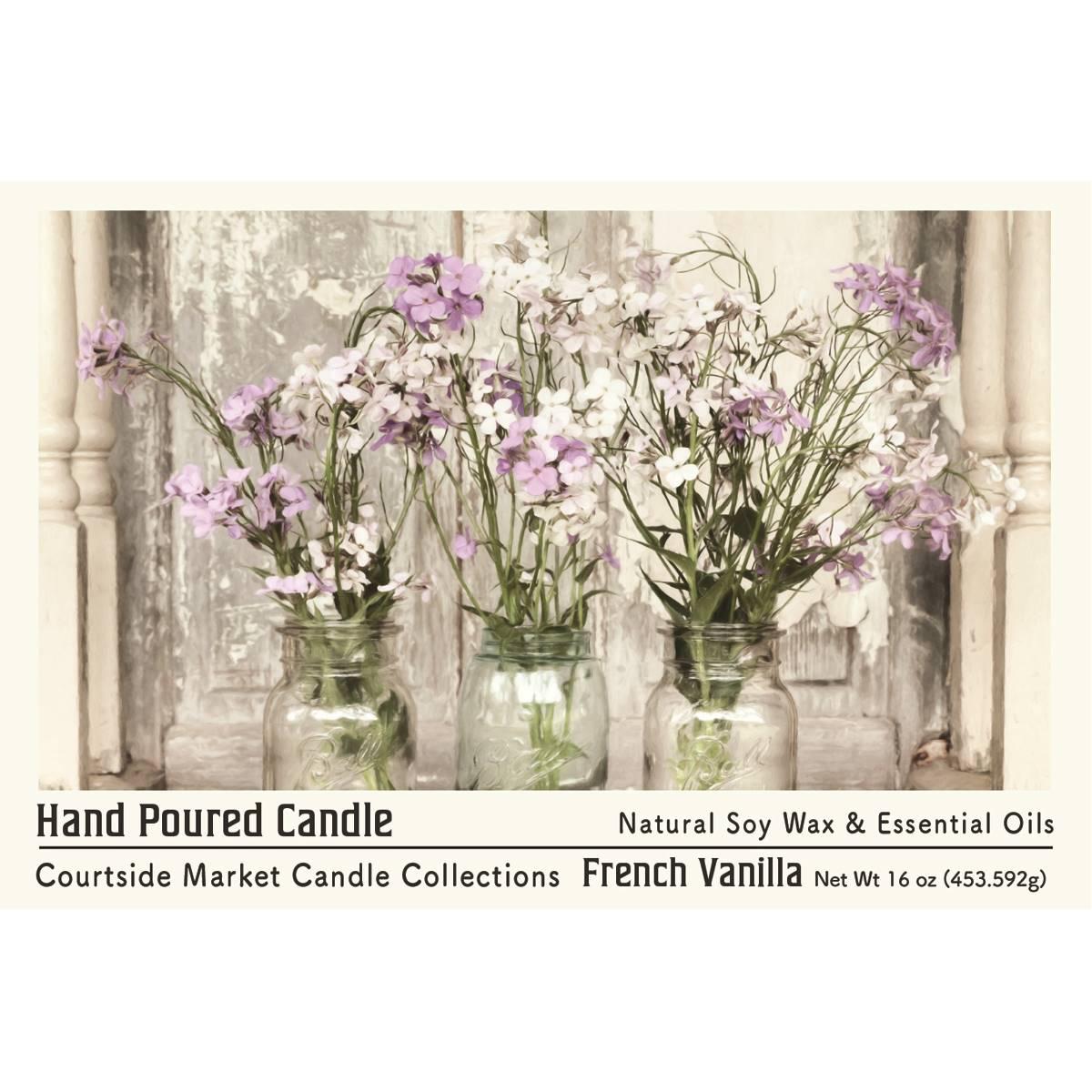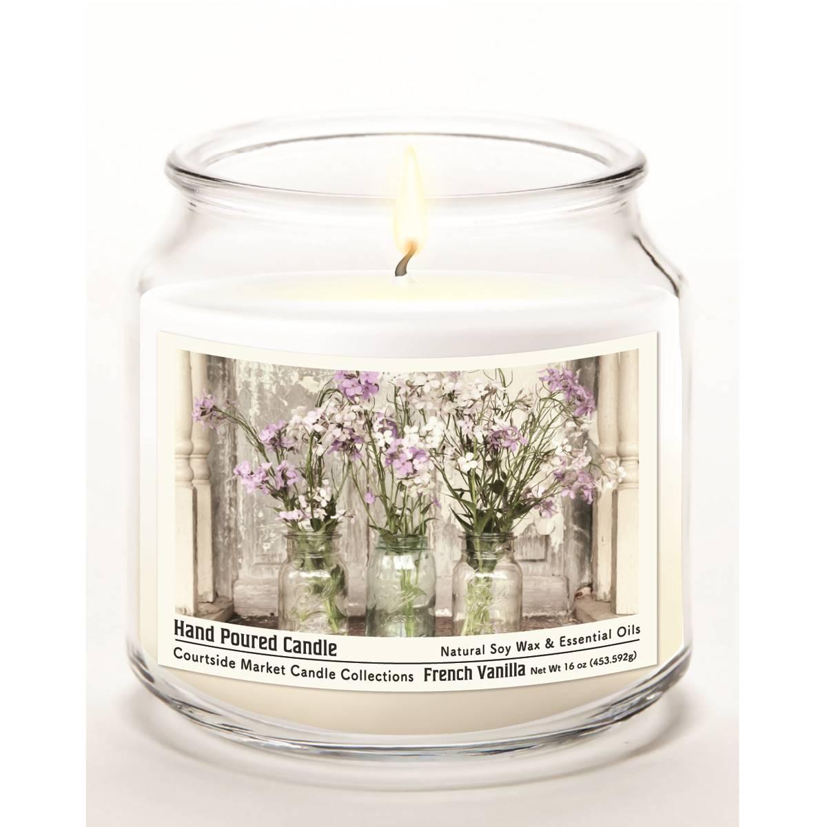 Whether for you or that special someone, this Courtside Market® From the Garden 16-ounce French Vanilla Jar Candle is the perfect way to enhance any space. Sit back, relax, and inhale deeply for that very well-deserved relaxing moment. Features blissful and fresh essential oils organically extracted from the root, plant, or flowers infused into natural soy wax and then carefully hand poured into top-quality vessels.