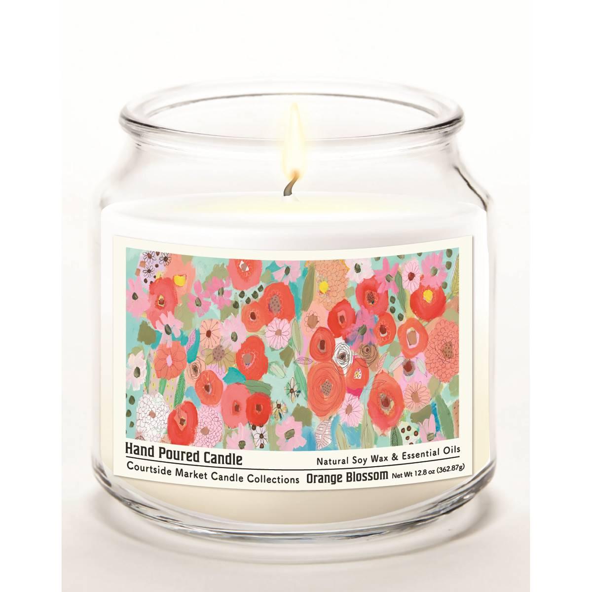 Whether for you or that special someone, this Courtside Market® Lovely 12.8-ounce Orange Blossoms Tumbler Candle is the perfect way to enhance any space. Sit back, relax, and inhale deeply for that very well-deserved relaxing moment. Blissful and fresh essential oils organically extracted from the root, plant, or flower are infused into natural soy wax and then are carefully hand poured into top-quality vessels.