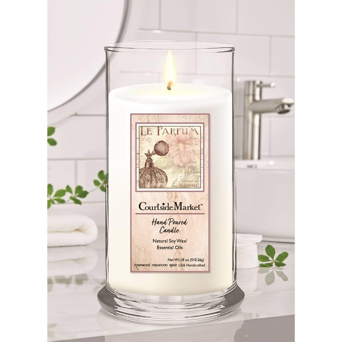 Whether for you or that special someone, this Courtside Market® 18-ounce Floral Perfume Tumbler Candle is the perfect way to enhance any space. Sit back, relax, and inhale deeply a Jasmin, Orange, and Cherry Scent for a very well-deserved relaxing moment. Blissful and fresh essential oils organically extracted from the root, plant, or flower are infused into natural soy wax and then are carefully hand poured into top-quality vessels.
