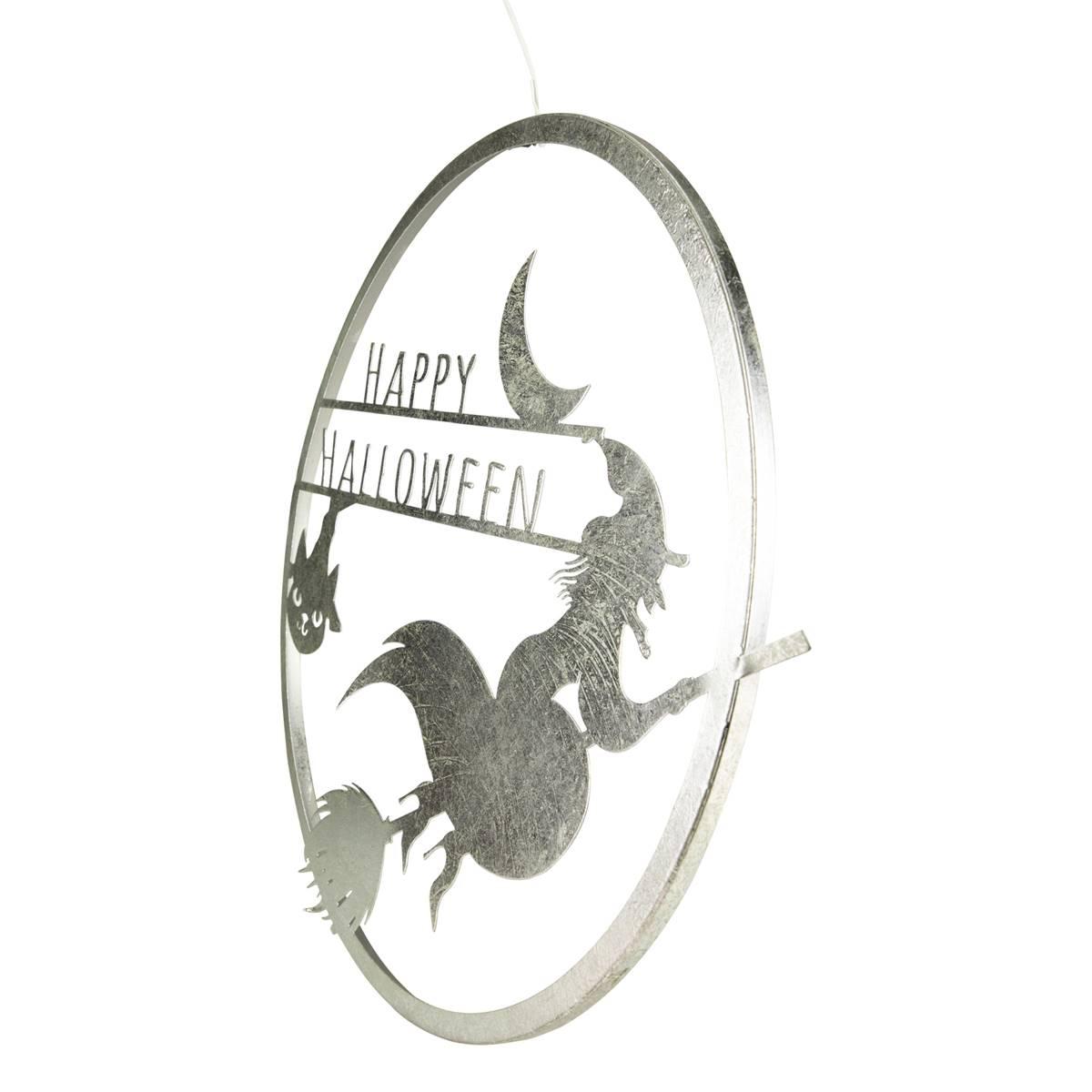 Description This classy Northlight Seasonal 17in. flying witch happy Halloween wall sign is an upscale way to celebrate the holiday. The large sign features a cat, moon, and...