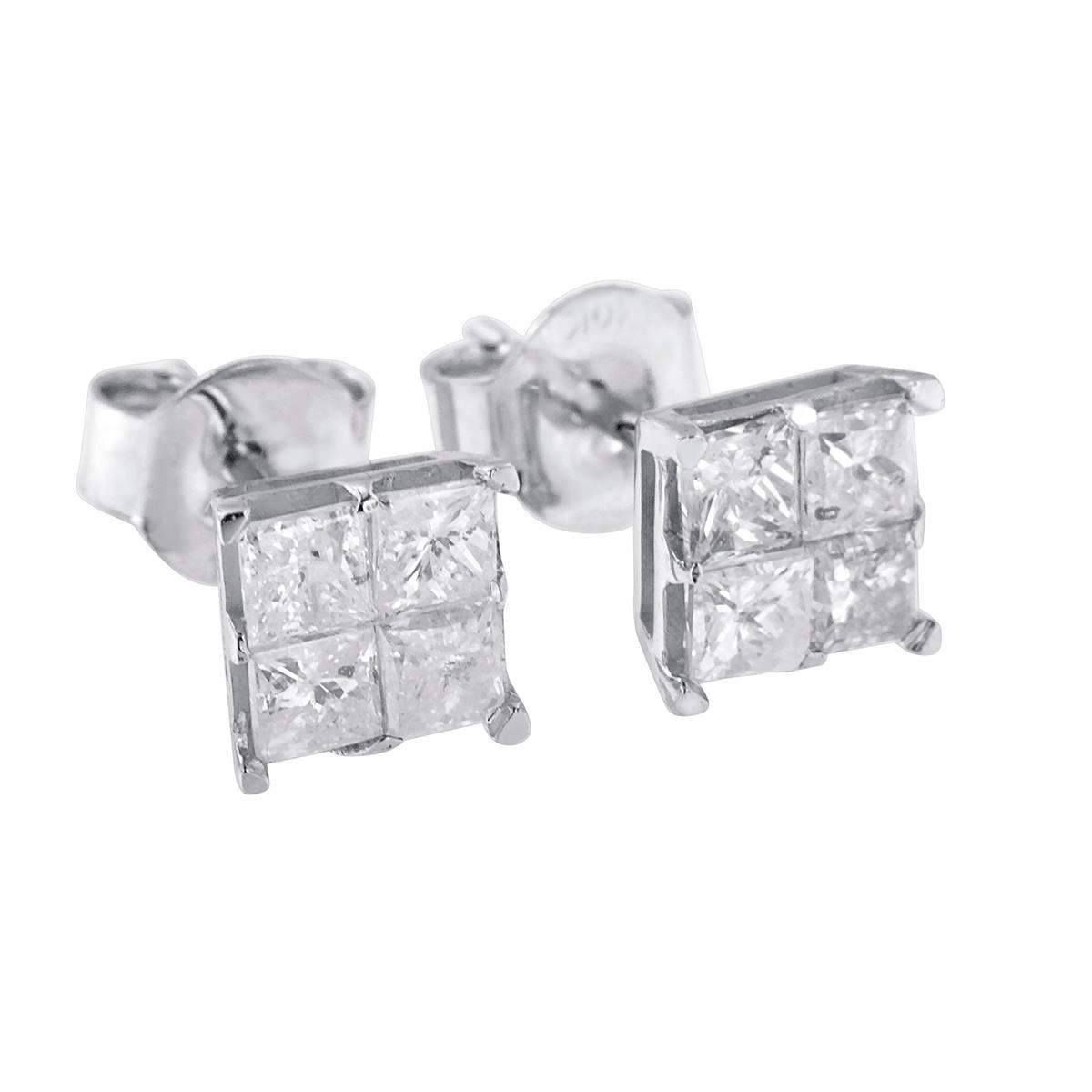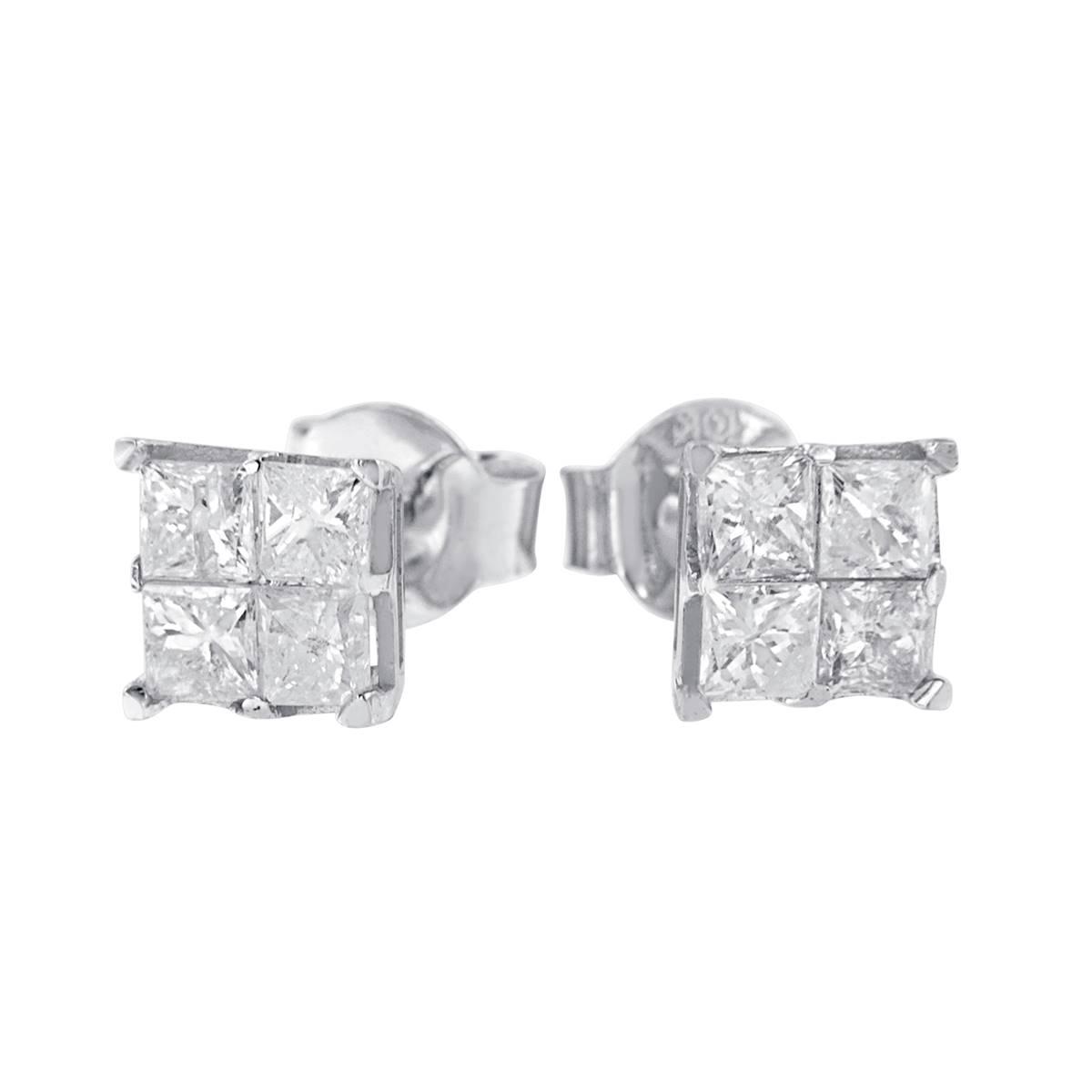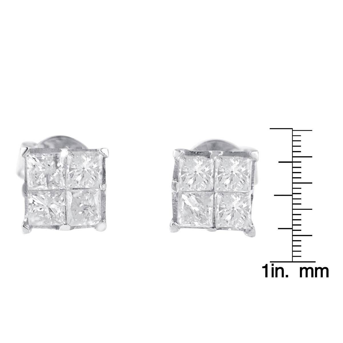 Description This Diamond Classics™ 10kt. white gold square shaped diamond earrings are dazzling and unique in design. They include eight princess-cut diamonds arranged in an...